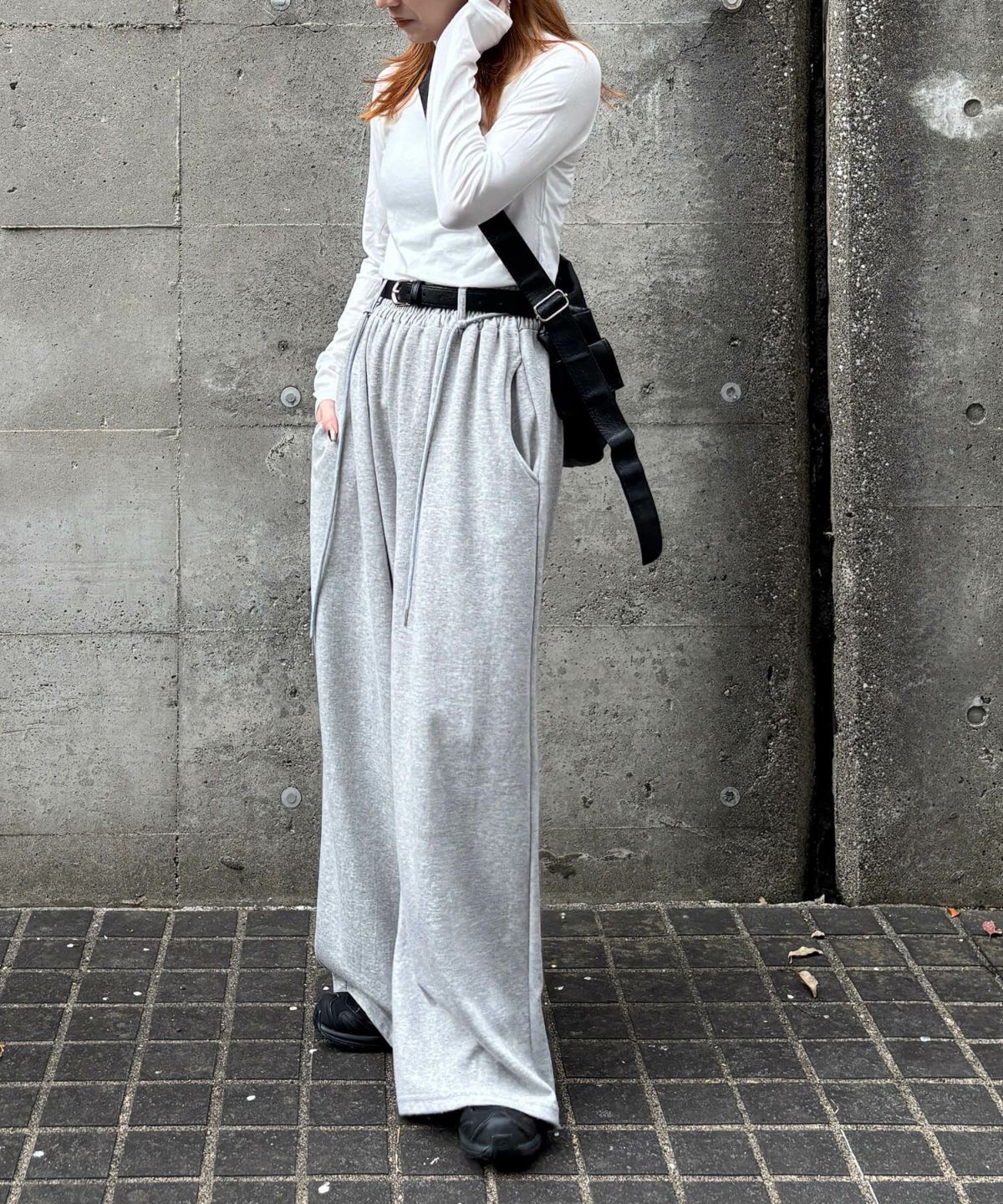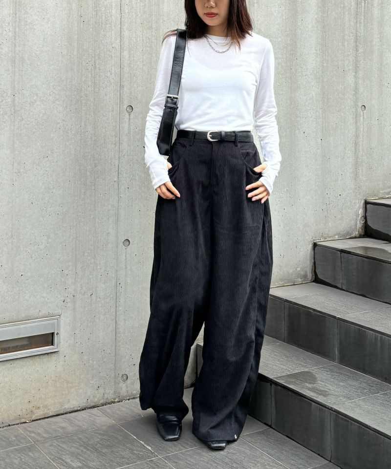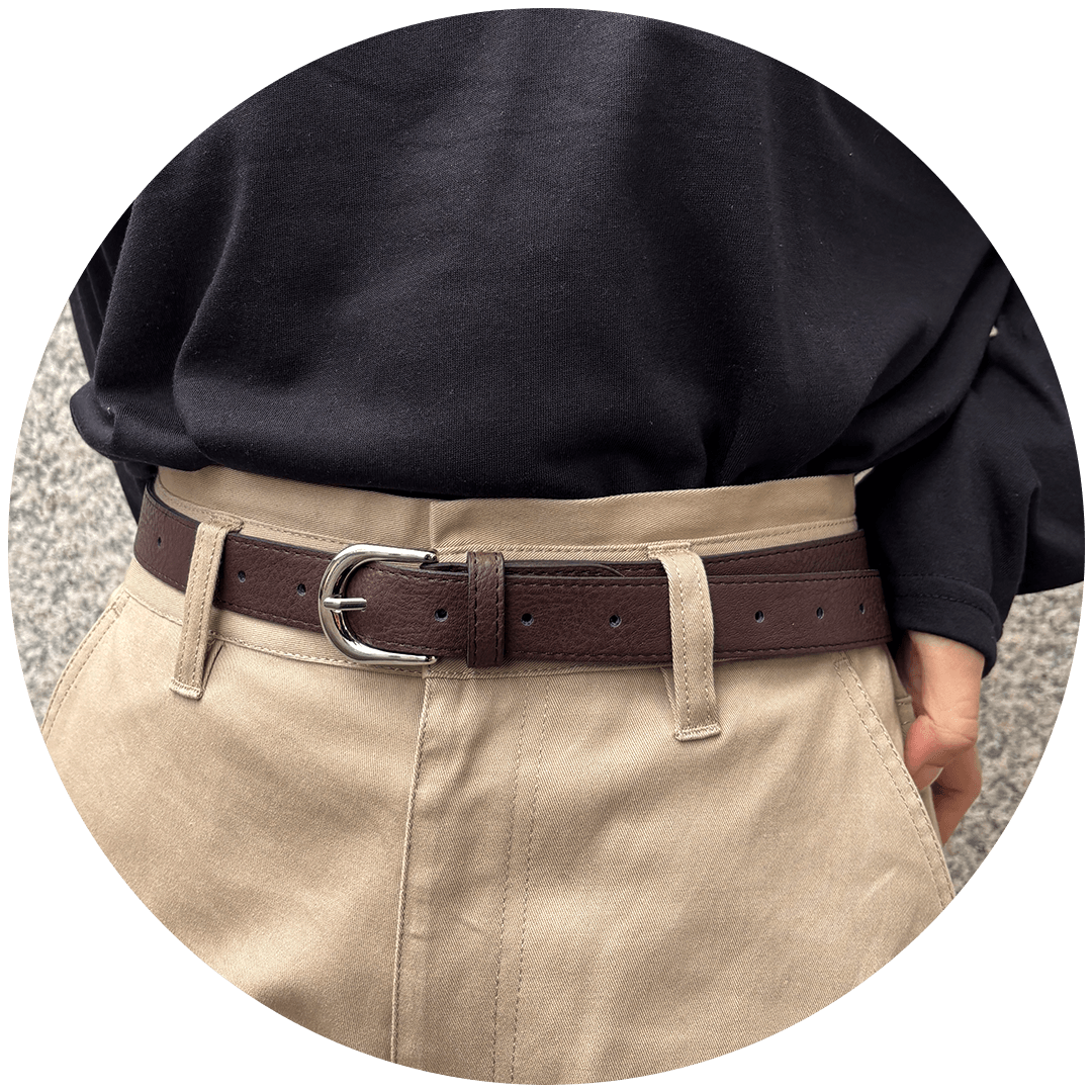 ベルトでウエストを締めるだけでメリハリのあるコーデになります。