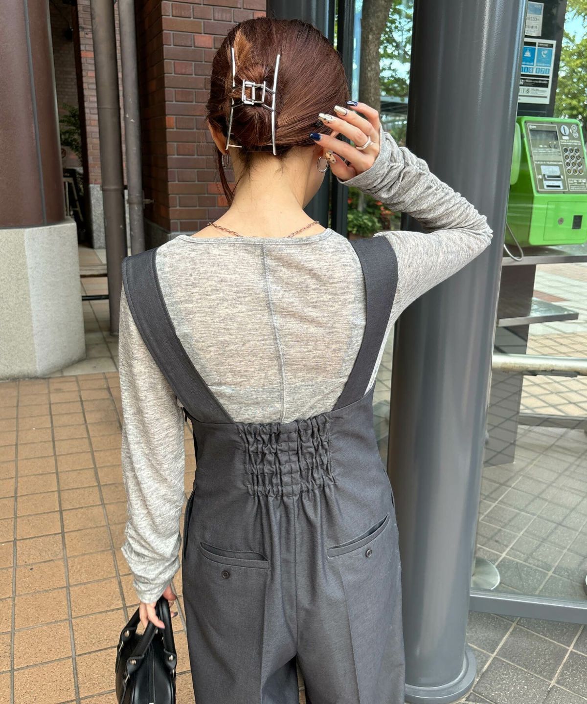 袖部分にくしゅくしゅとしたシャーリング加工を施したロンT。