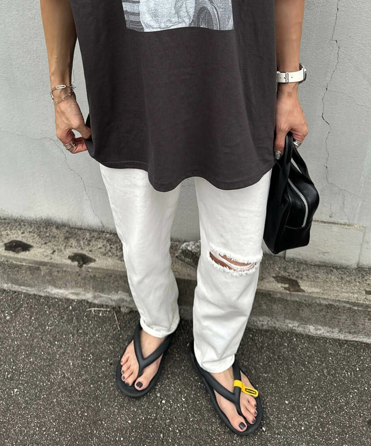 他の画像を見る Damaged white denims(chiica select) SALE 定価 ¥ 8,580 → ¥ 6,930 税込 販売期間 2025/11/21 12:00 〜 2025/12/09 12:00 カートに入れる お気に入りに登録する