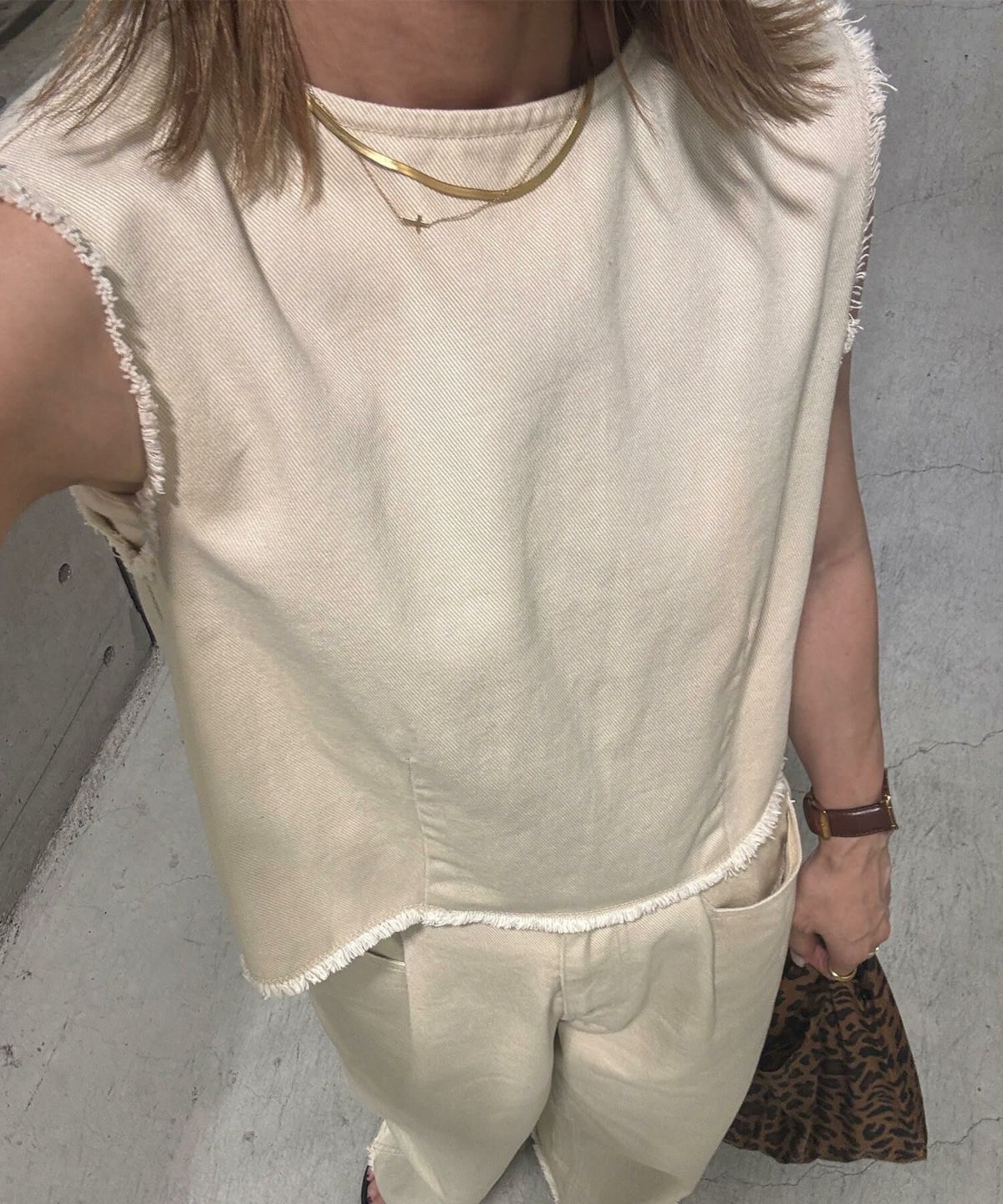 他の画像を見る Front hook fringe vest (chiica select) SALE CLEARANCE 定価 ¥ 5,500 → ¥ 3,740 税込 販売期間 2025/11/21 12:00 〜 2025/12/09 12:00 カートに入れる お気に入りに登録する