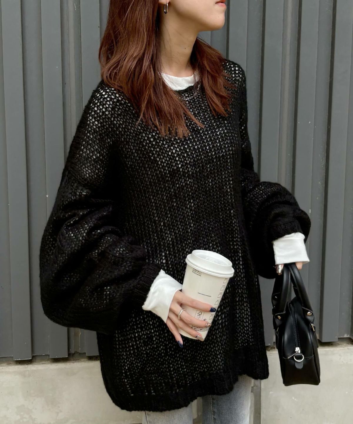 他の画像を見る Loose sheer knit SALE CLEARANCE 定価 ¥ 2,970 → ¥ 2,750 税込 販売期間 2025/11/21 12:00 〜 2025/12/09 12:00 カートに入れる お気に入りに登録する