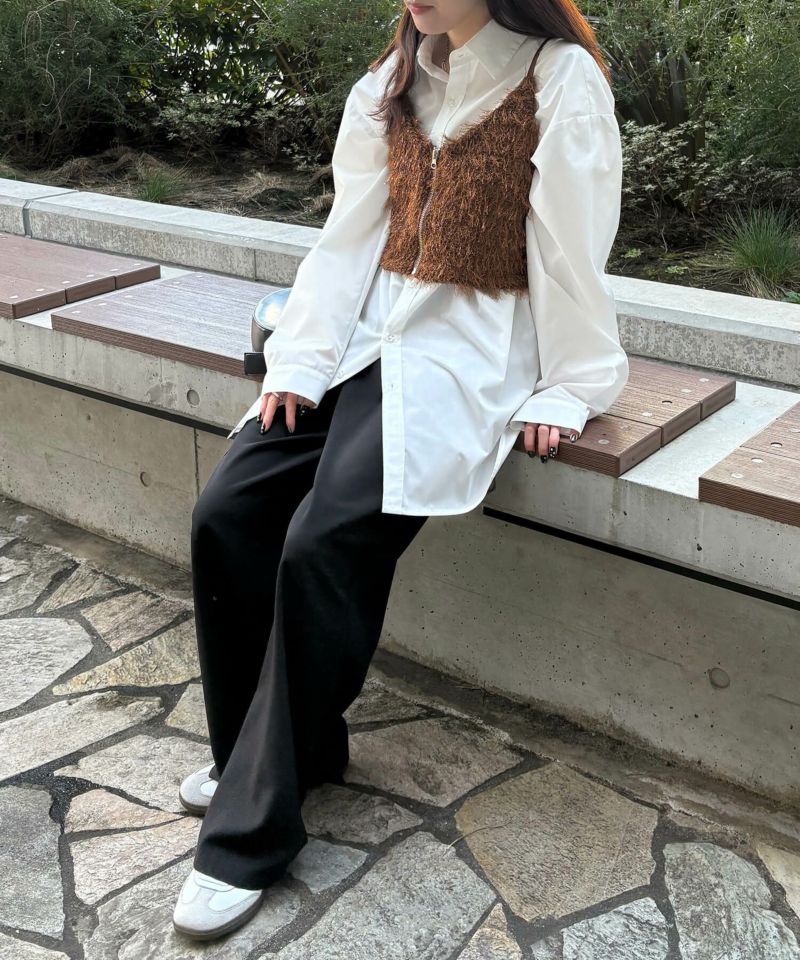 ブラウスやTシャツと重ね着するだけでこなれ感のあるスタイリングになります。
