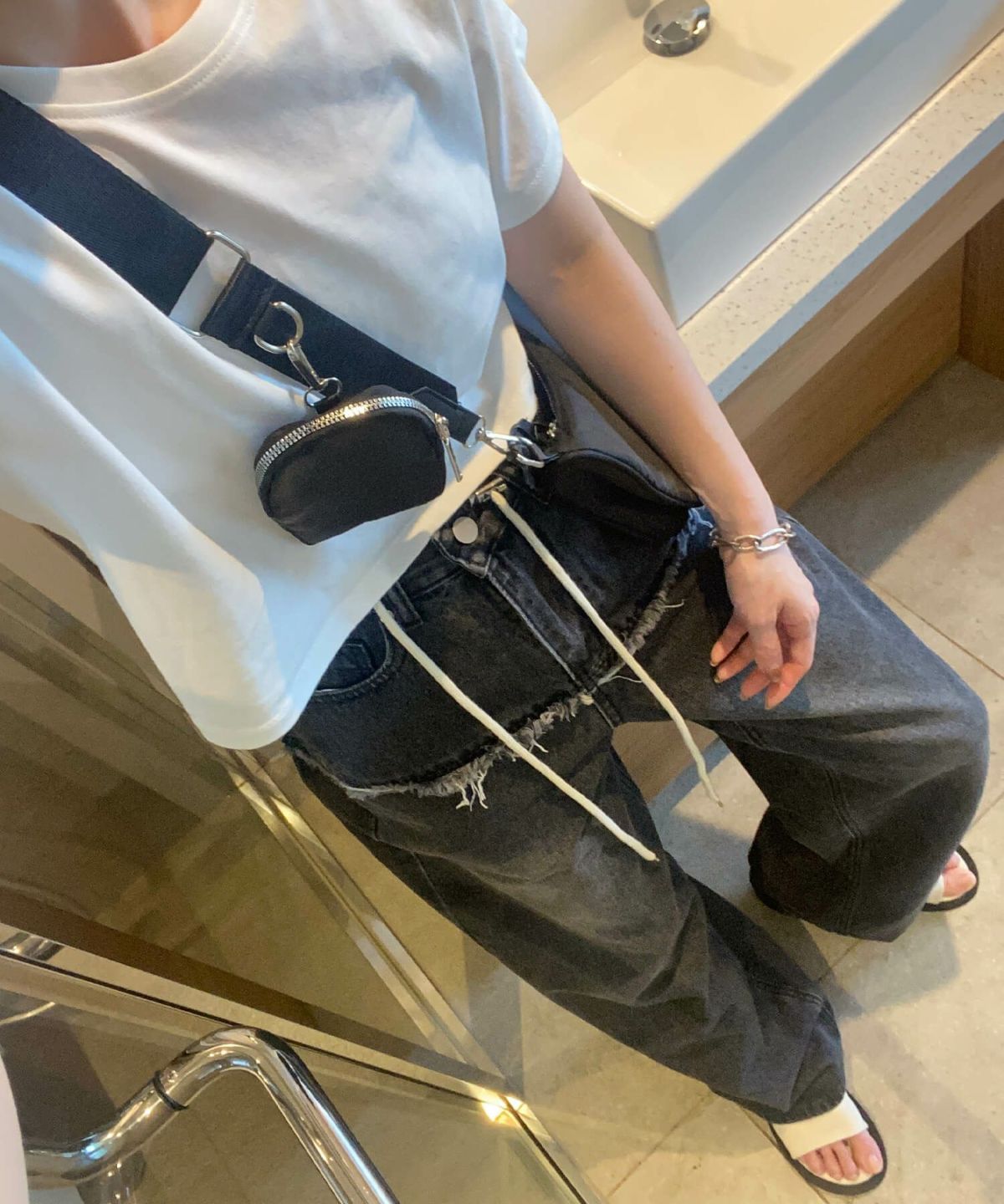 他の画像を見る Damaged black denim (chiica select) SALE 定価 ¥ 6,930 → ¥ 5,500 税込 販売期間 2025/11/21 12:00 〜 2025/12/09 12:00 カートに入れる お気に入りに登録する