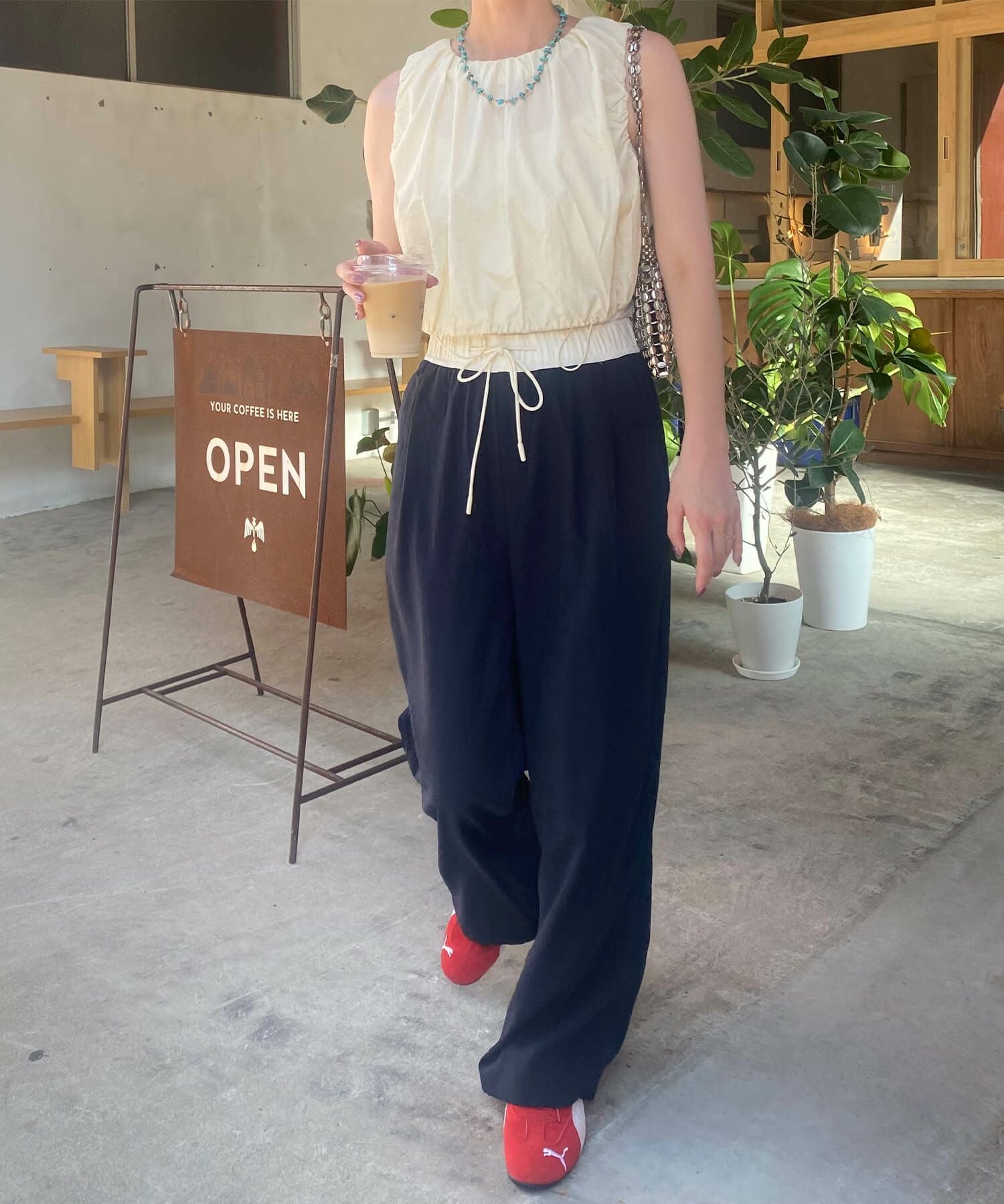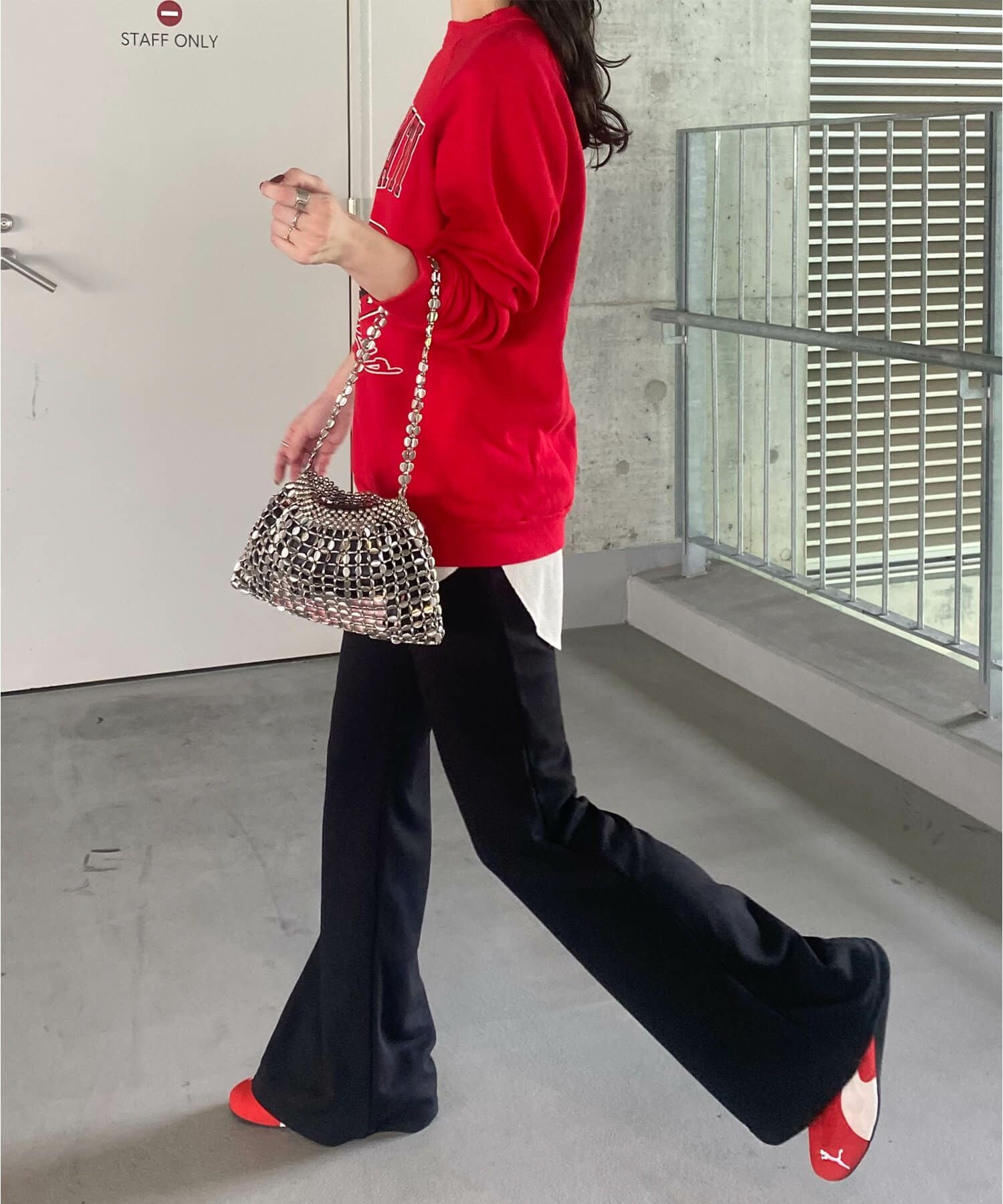 トレンドのシルバーバッグは持つだけでコーデを華やかにしてくれます。