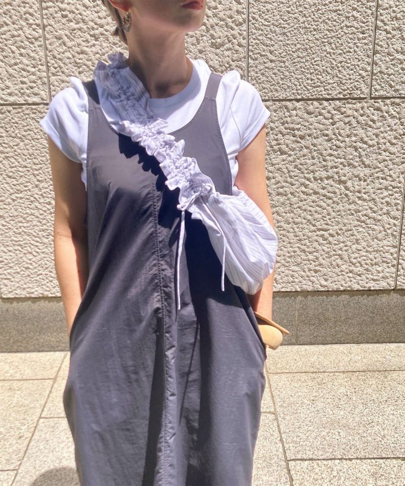 コロンとしたフォルムとギャザーが可愛いボディバッグ。