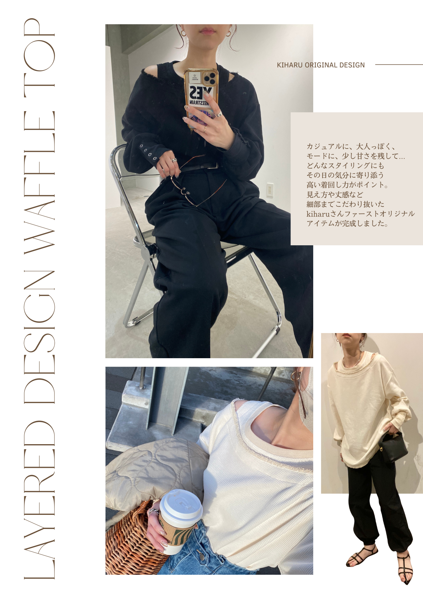 大人気のレイヤードデザインワッフルトップスに