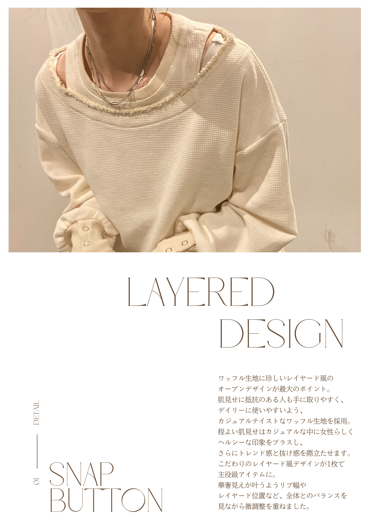 こだわりのレイヤード風デザインが1枚で主役級アイテムに。