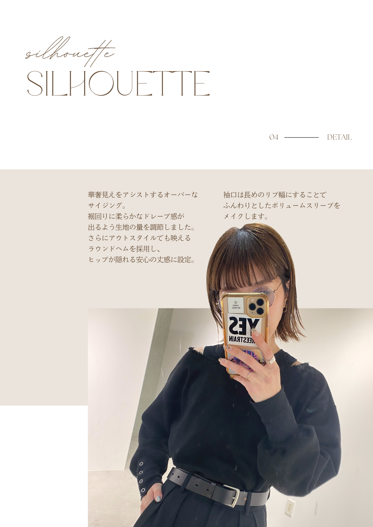 華奢見えをアシストするオーバーなサイジング。