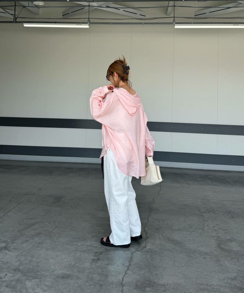 ハリ感のあるボトムスを合わせるとメリハリの効いたコーデに。