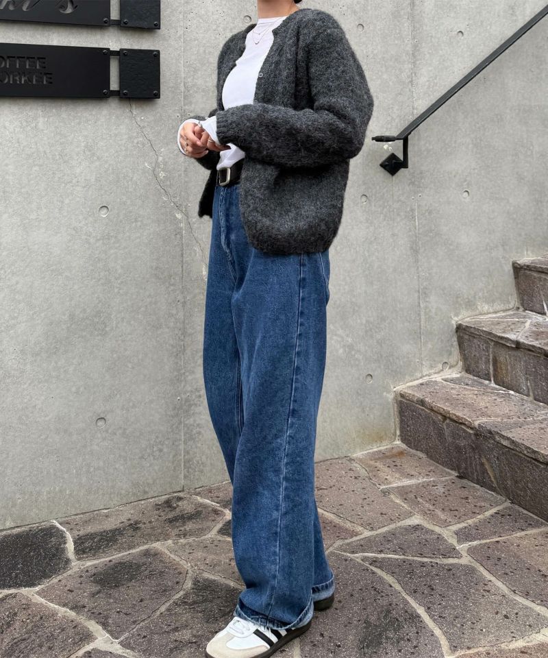 キーネックデザインで首元に抜け感が出てほっこりなりすぎないのもポイントです!