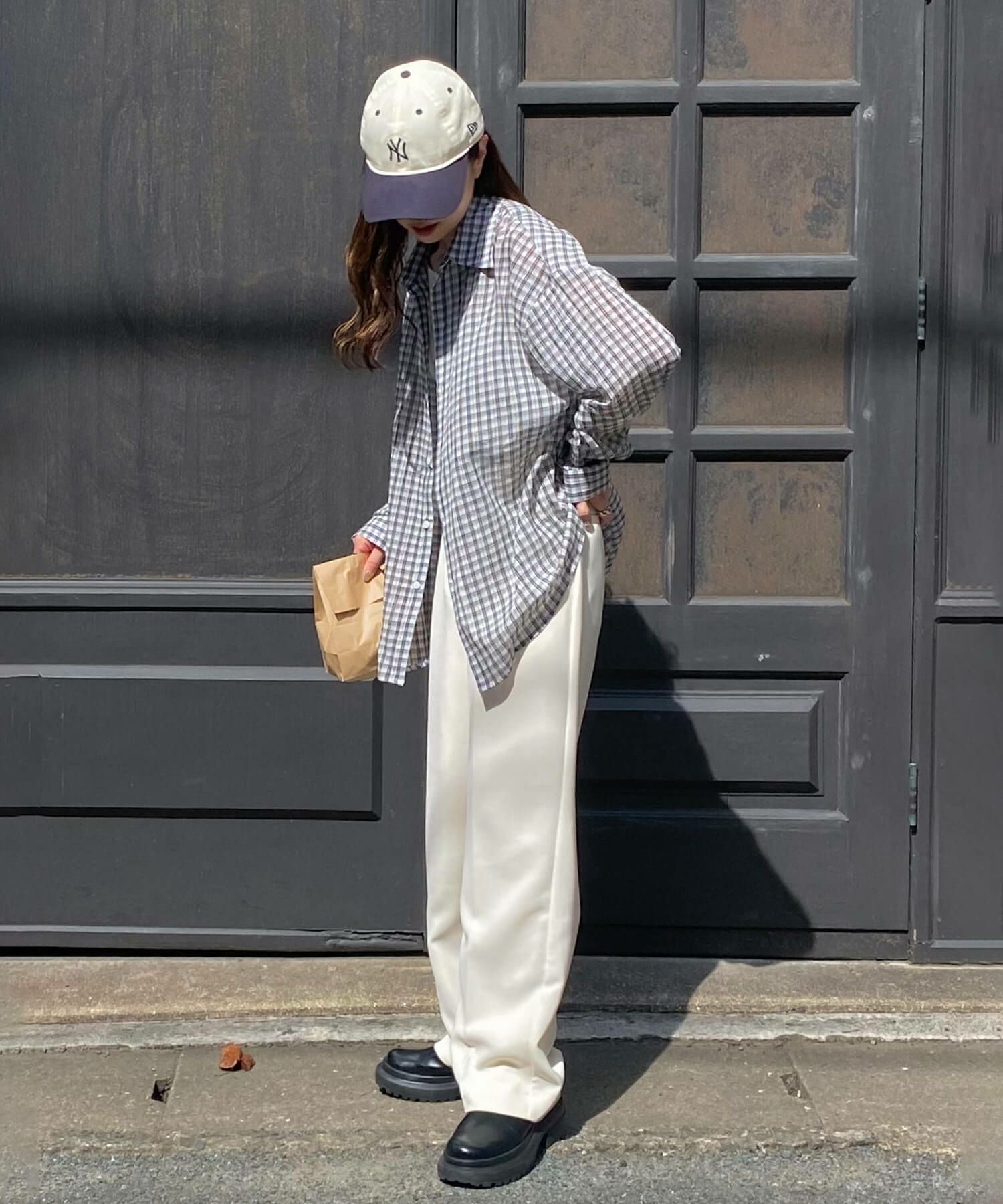 キャップやトートバッグを合わせたラフなコーデもおすすめ。