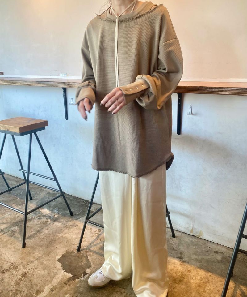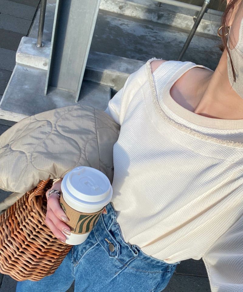 ワッフル生地に珍しい、レイヤード風のオープンデザインが最大のポイント。