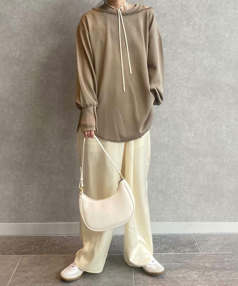 程よい肌見せはカジュアルな中に女性らしくヘルシーな印象をプラスし