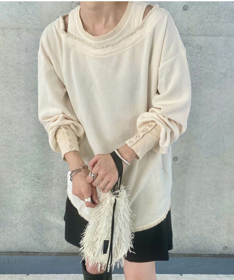 こだわりのレイヤード風デザインが1枚で主役級アイテムに。