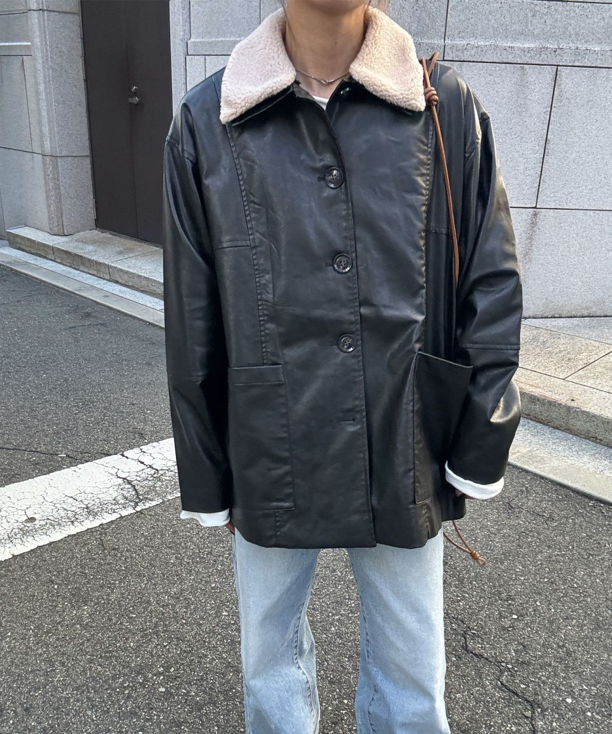 他の画像を見る Boa collar leather jacket (chiica select) SALE 定価 ¥ 12,870 → ¥ 11,880 税込 販売期間 2025/11/21 12:00 〜 2025/12/09 12:00 カートに入れる お気に入りに登録する