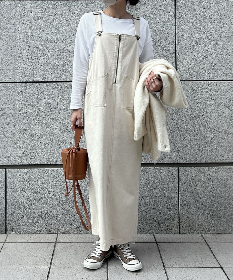 ジャンパースカートを女性らしく着られるchiicaのこだわりです。