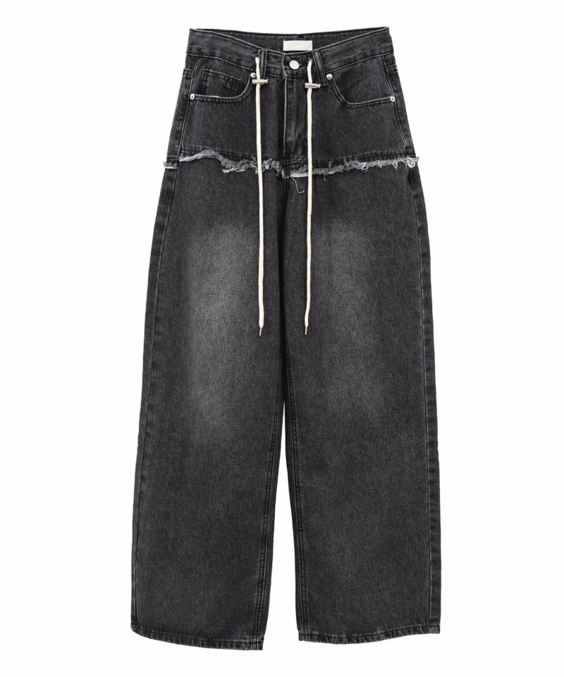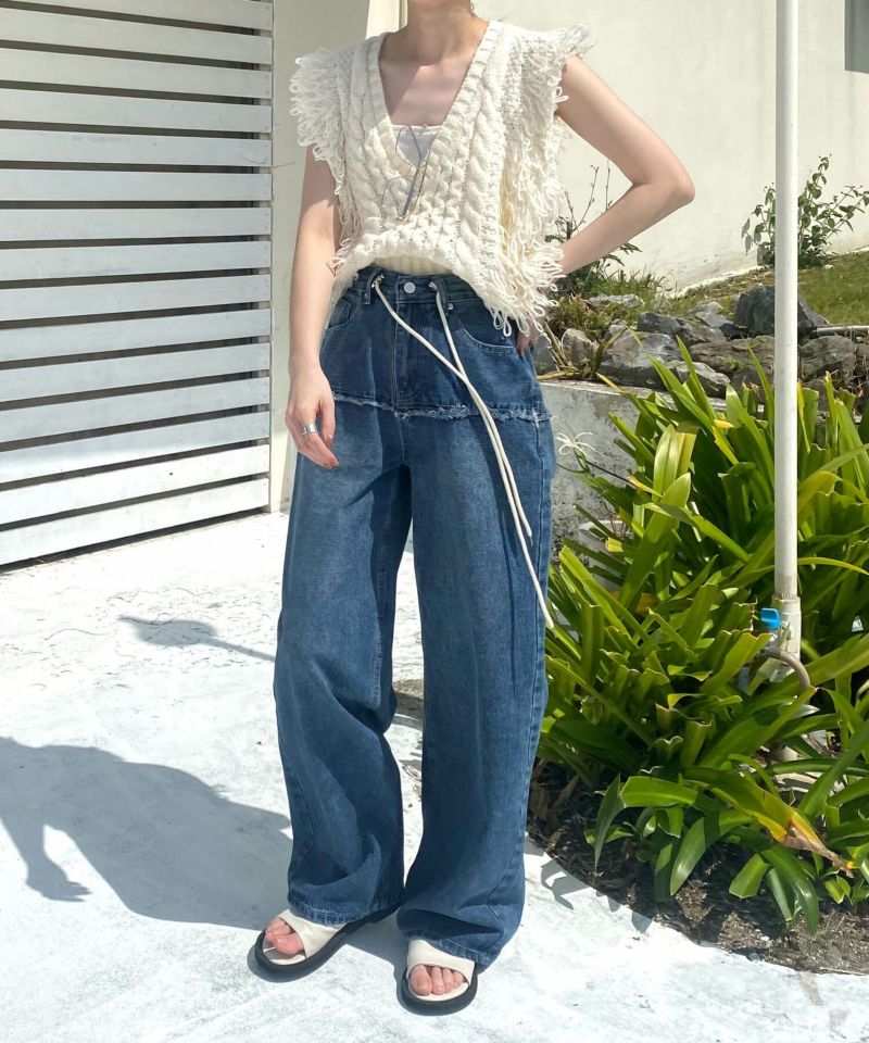 ヒップ周りがフリンジになっていて夏っぽさもプラスしたデザイン性のあるデニムです。