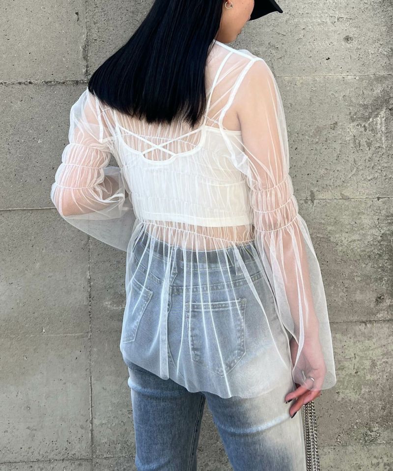チュールならではの軽やかでエアリーなブラウスに仕上がっています。