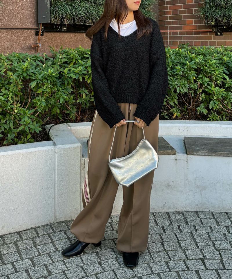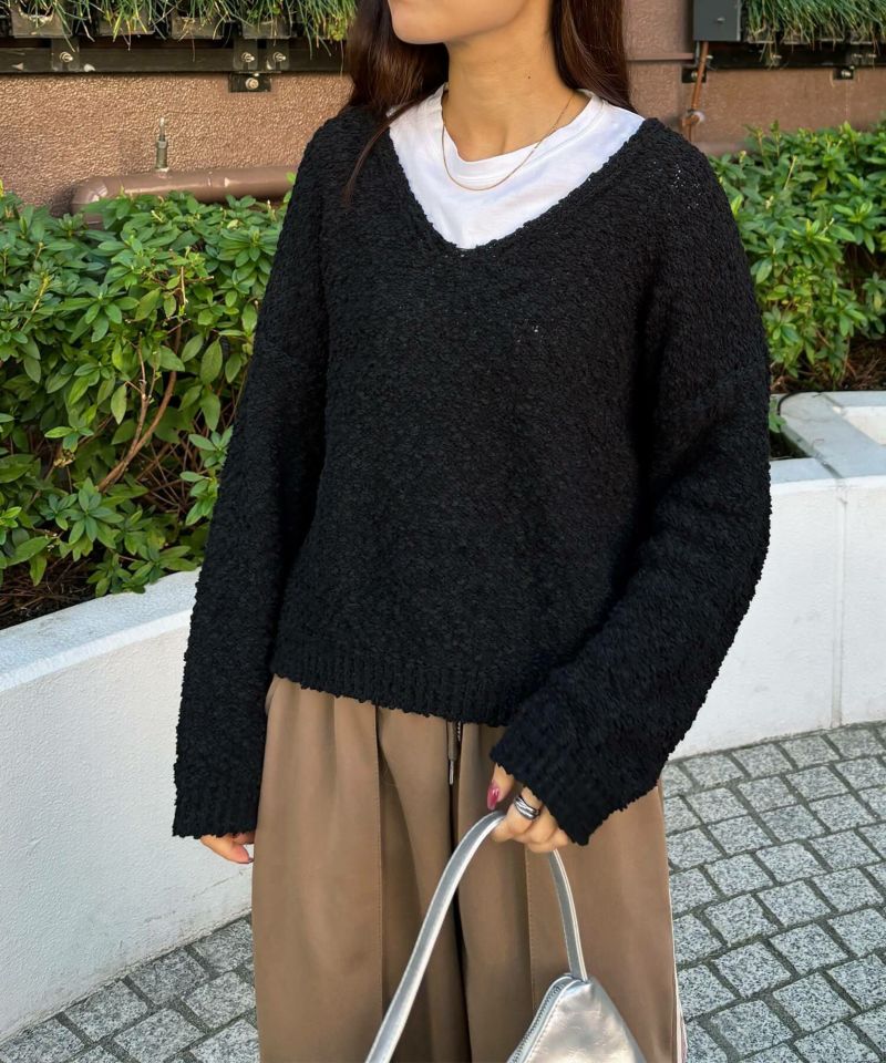 ボアのようなぽこぽことした糸感が特徴のVネックニットです。