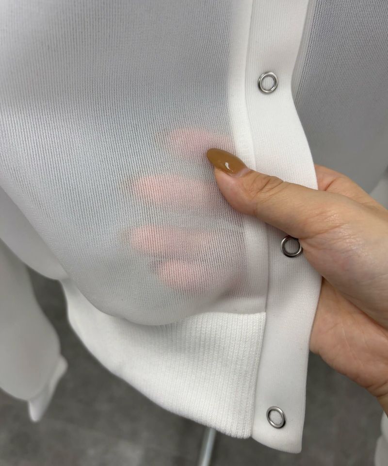 シルバーのリングドットがデザインポイントのカーディガンです。