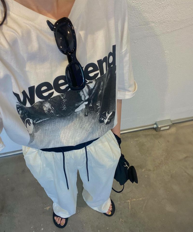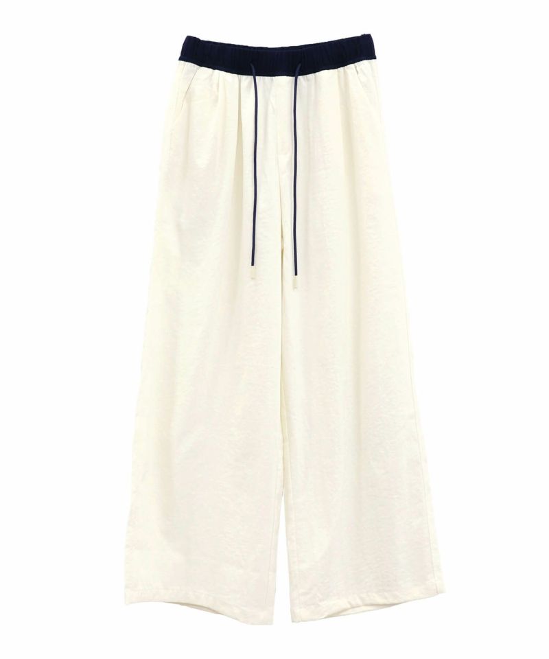 ウエストの配色切り替えが可愛いワイドパンツ。