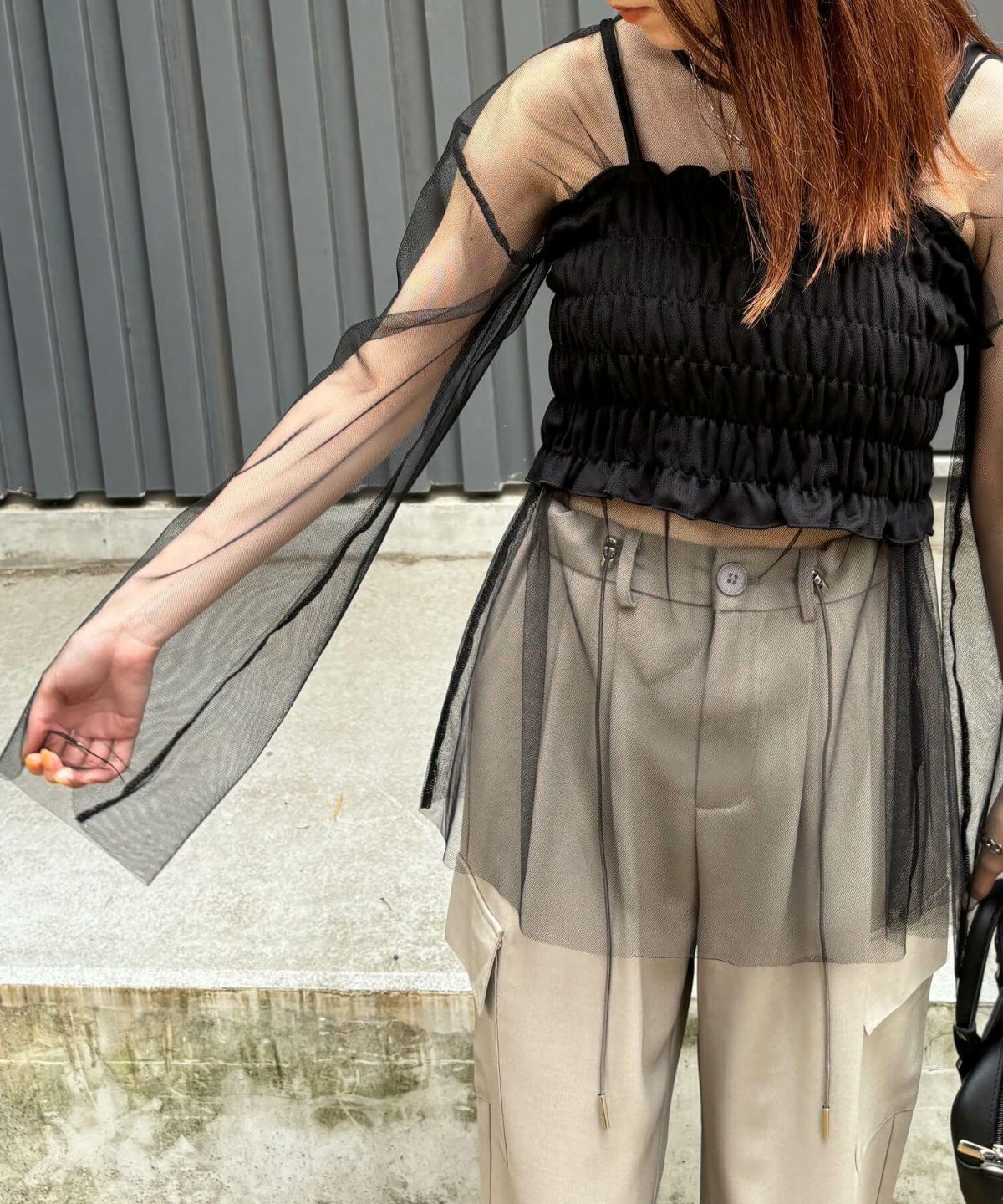 他の画像を見る 【会員限定SALE】 Gathered tulle peplum blouse SALE CLEARANCE 定価 ¥ 4,840 → ¥ 2,200 税込 販売期間 2025/11/19 12:00 〜 2025/11/21 12:00 カートに入れる お気に入りに登録する