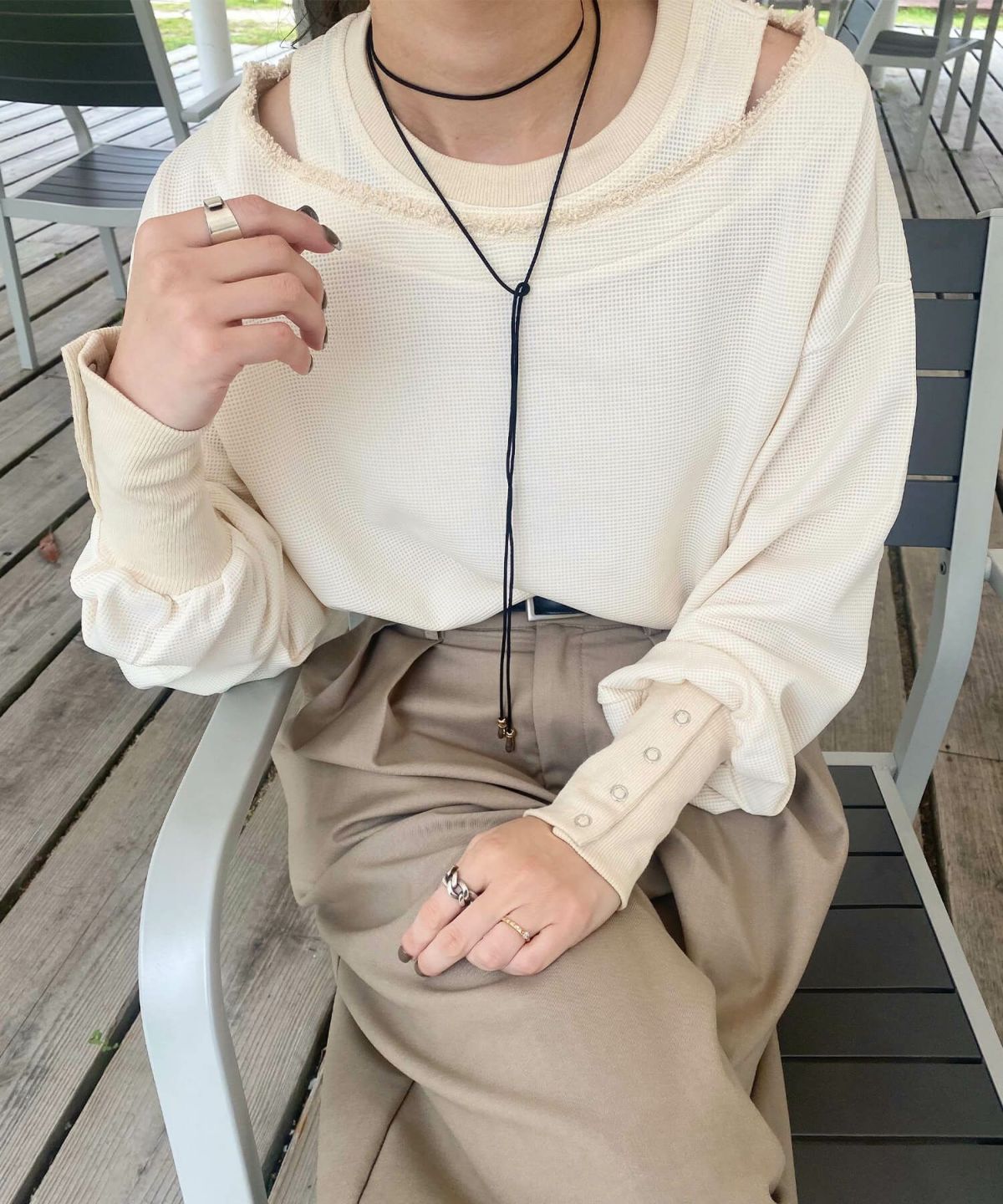 【11/28再入荷アイテム】 Mixed border bustier long tee (comochi original)