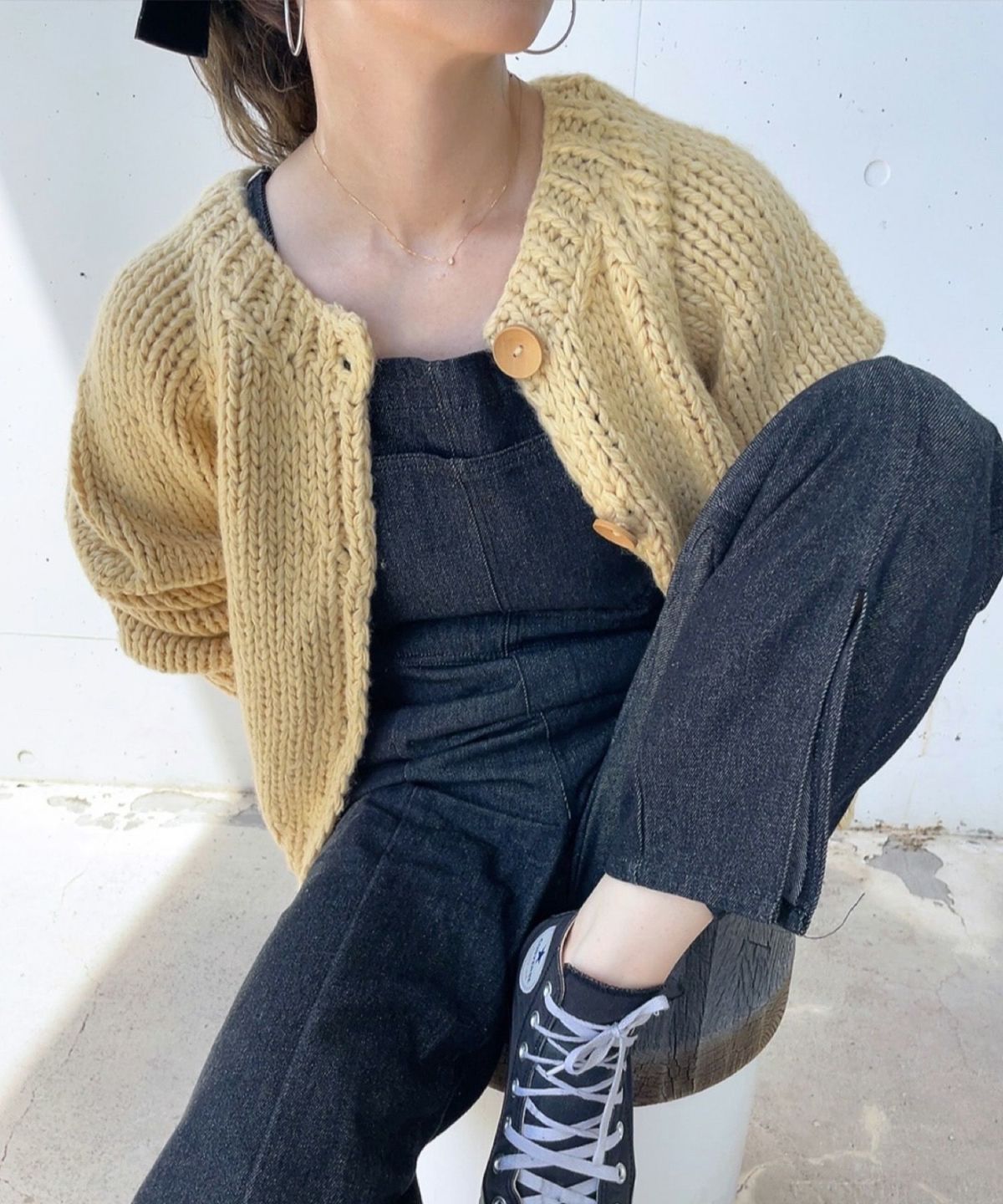 【11/21再入荷アイテム】 Slub yarn ribbon design hand knit (comochi original)