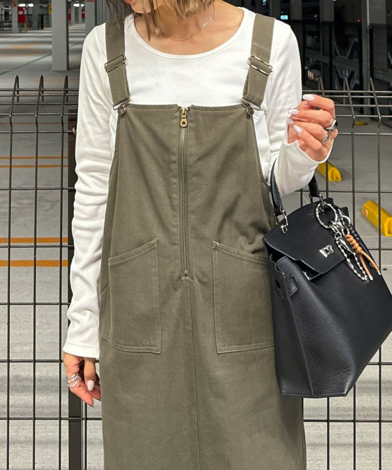ジャンパースカートを女性らしく着られるchiicaのこだわりです。