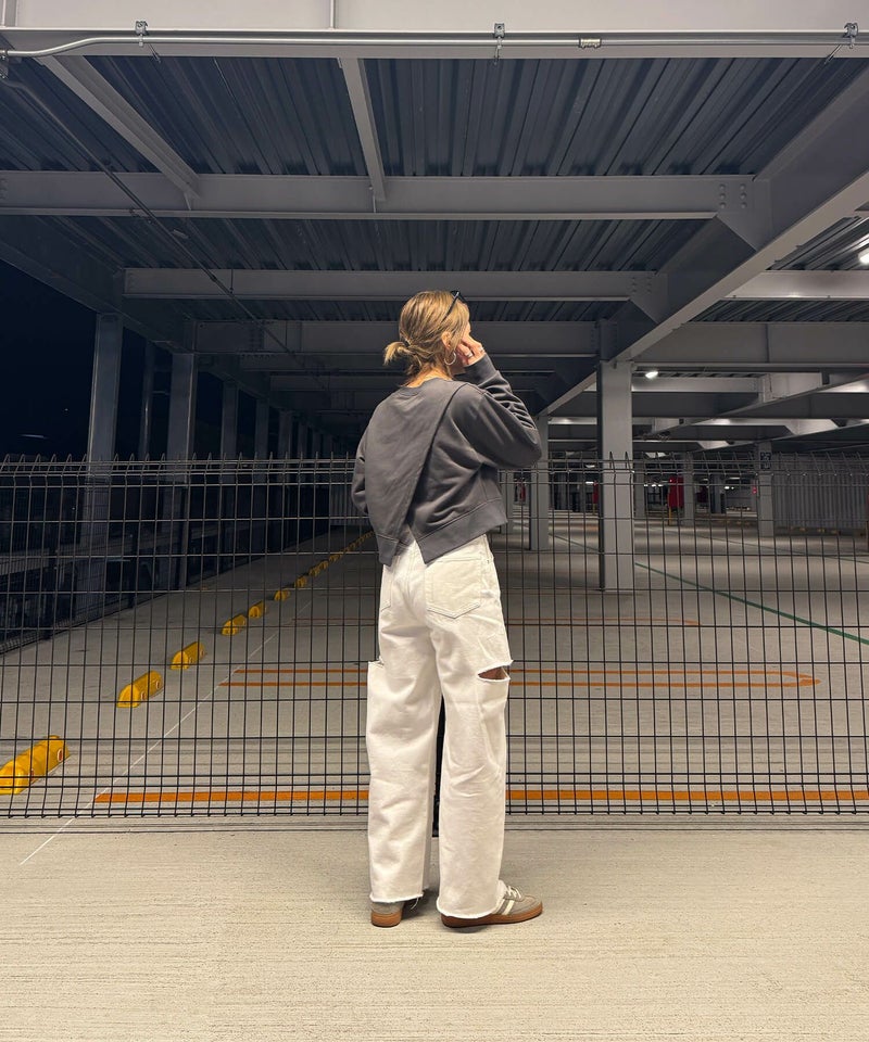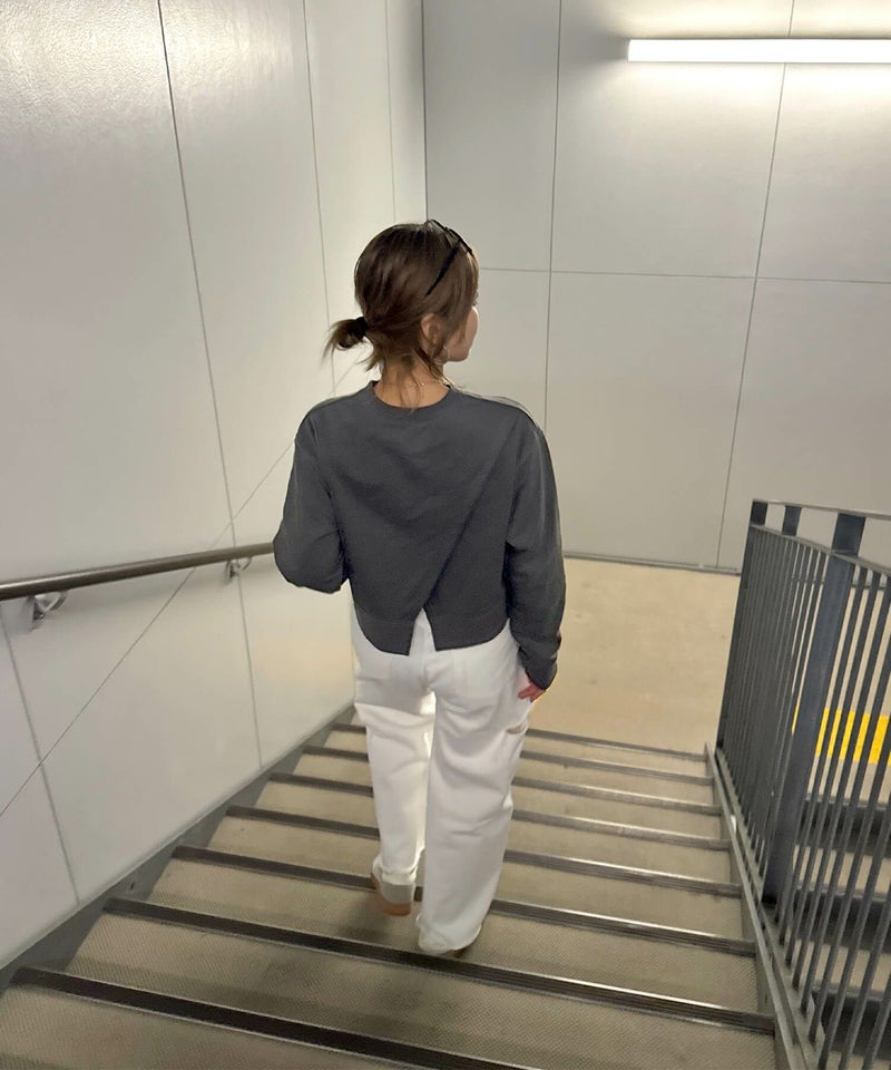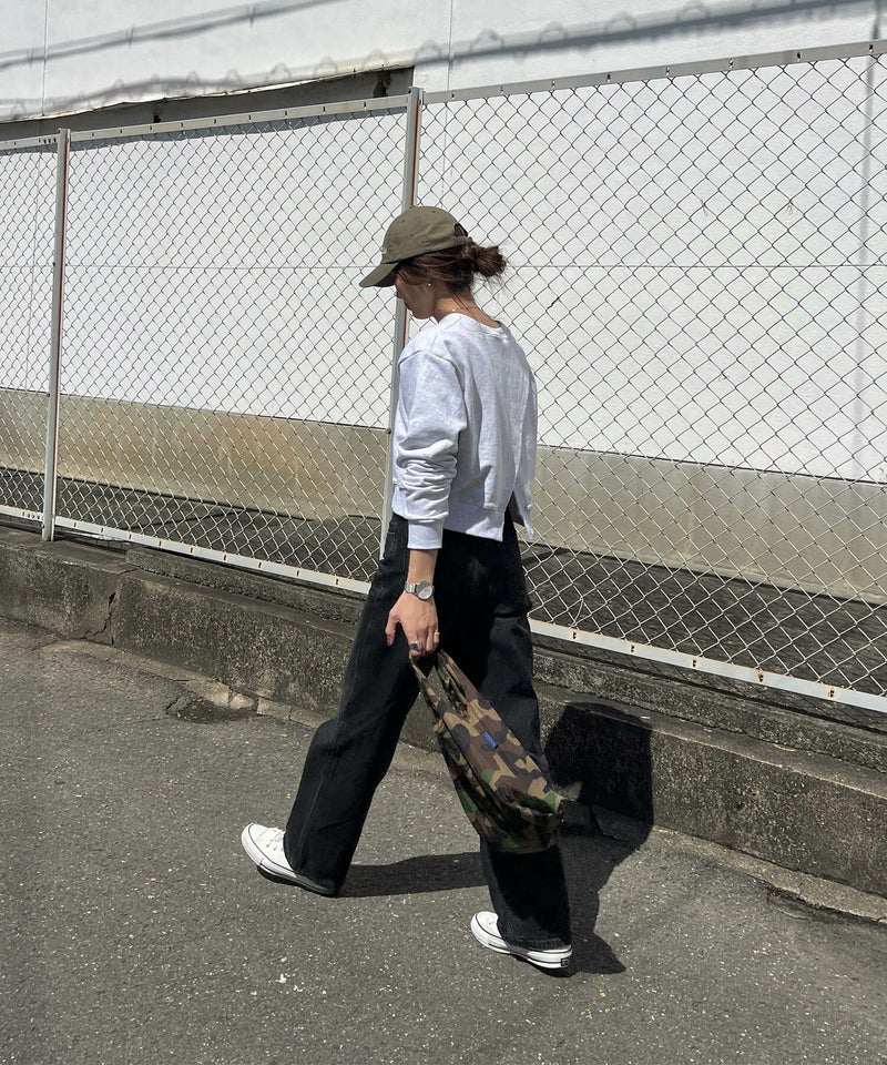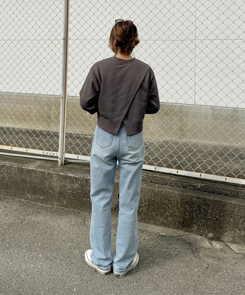 正面はシンプルなスウェットなので合わせやすく、着回し力も抜群。