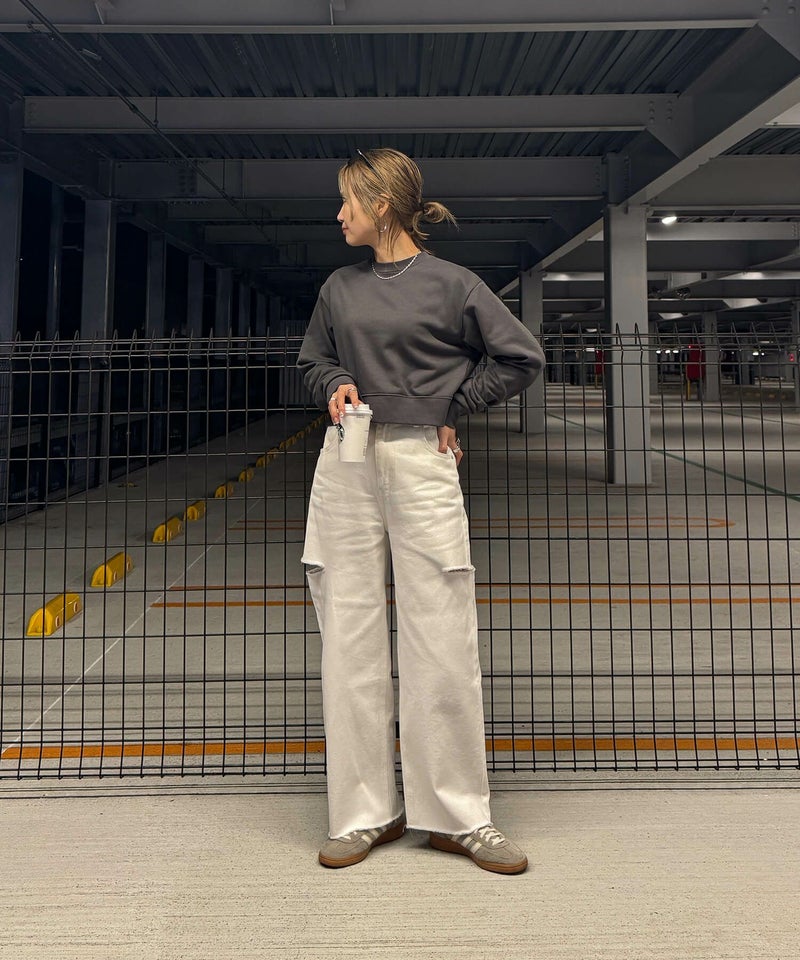 柔らかな印象でカジュアルコーデを大人っぽく仕上げてくれるニュアンスベージュ。