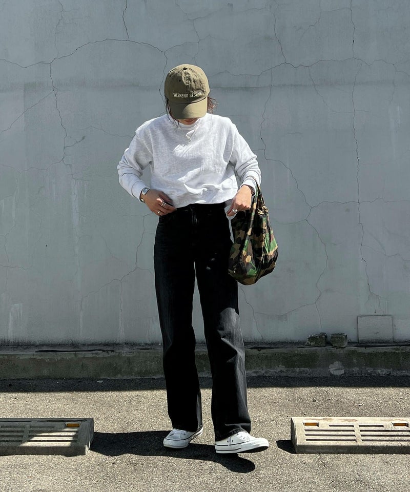 ヴィンテージ感がコーデをワンランクアップさせてくれて、おしゃれ見え間違いなしのこなれチャコール。