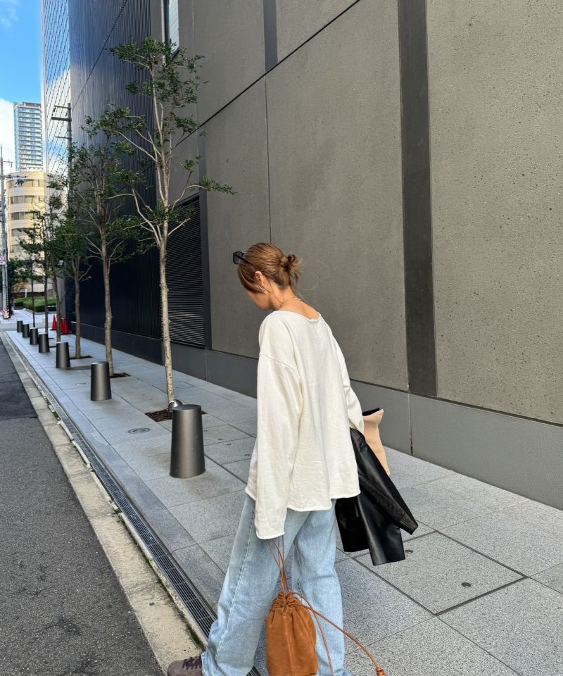 シンプルだからこそアクセサリーや小物をプラスしてこなれ感を演出。