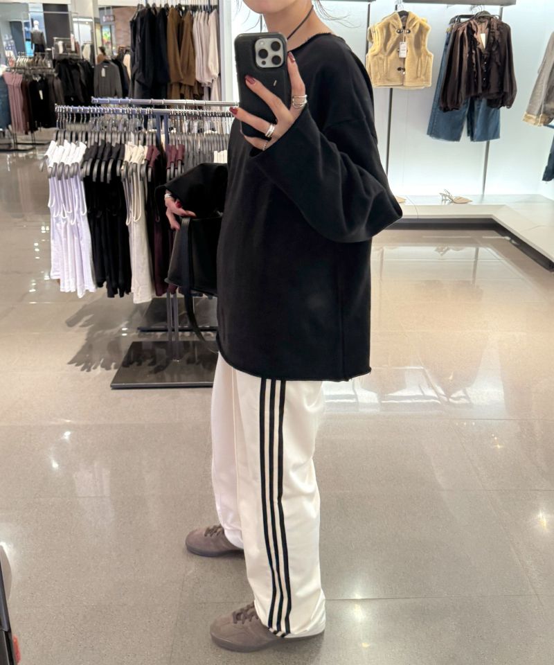 定番のデニム合わせはもちろん、スウェットに合わせたラフなカジュアルコーデもおすすめ。