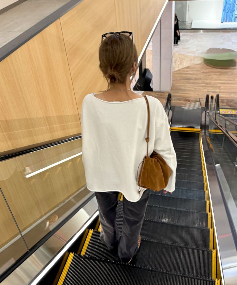 ゆったりした型落ちシルエットで、体のラインを拾わずに着られます。