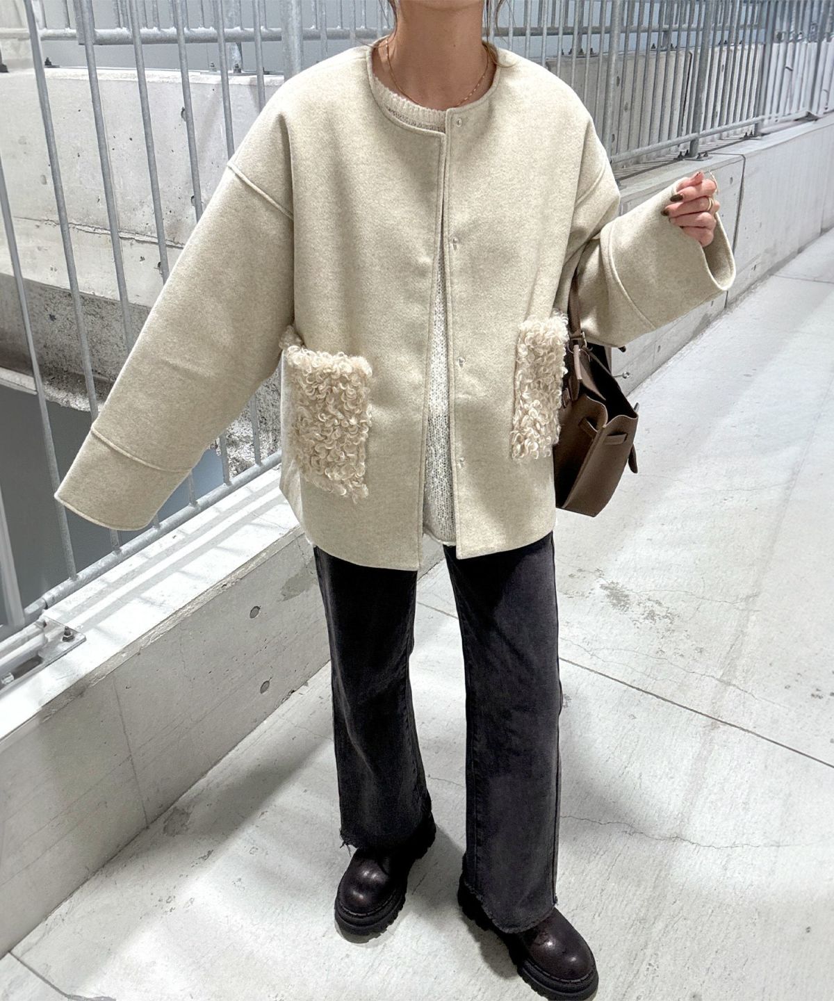 他の画像を見る No coller pocket fur coat (chiica select) NEW ¥ 11,000 税込 販売期間 2025/11/09 20:00 〜 カートに入れる お気に入りに登録する