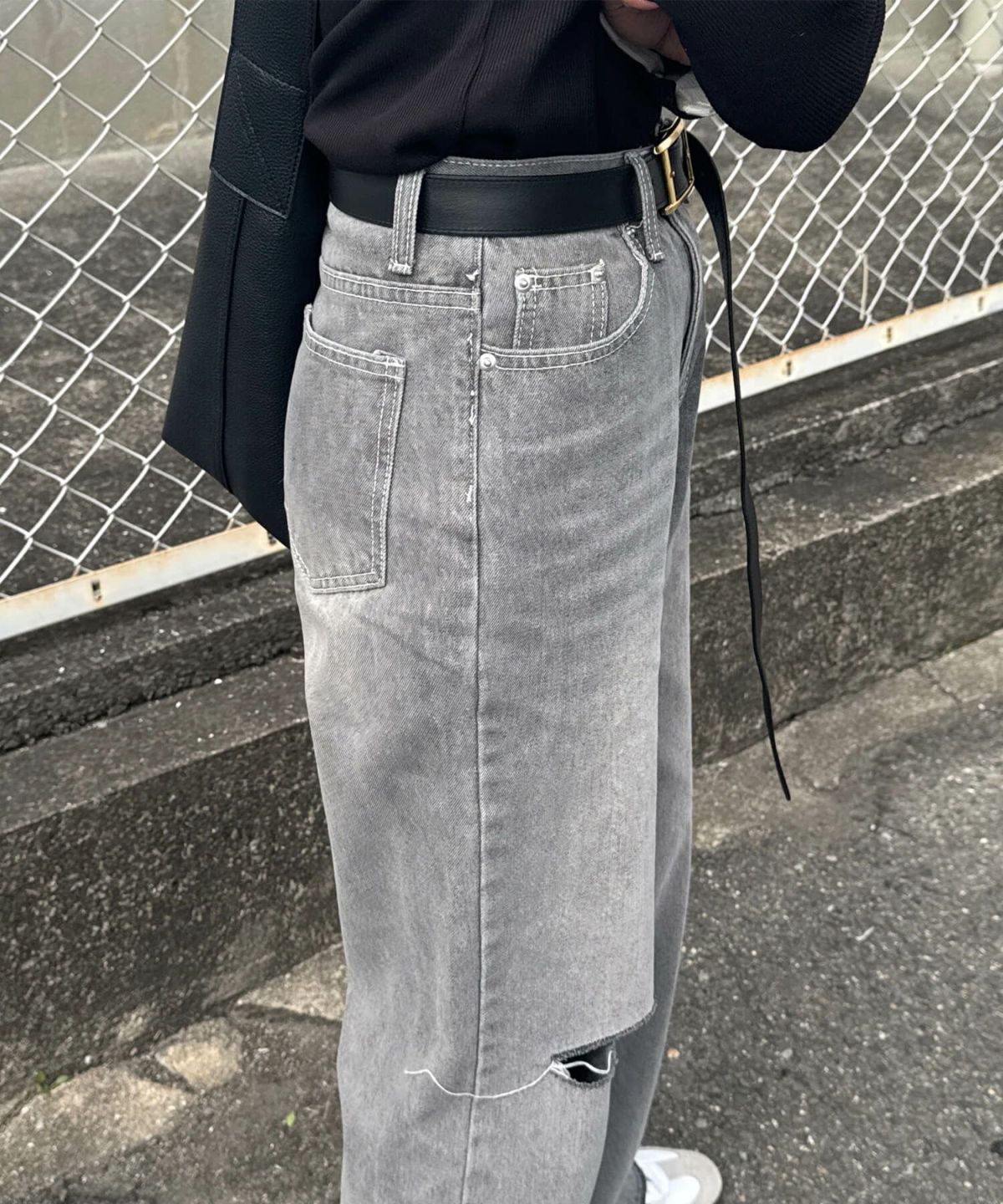 他の画像を見る One side damaged denim (chiica select) SALE 定価 ¥ 7,480 → ¥ 5,940 税込 販売期間 2025/11/21 12:00 〜 2025/12/09 12:00 カートに入れる お気に入りに登録する