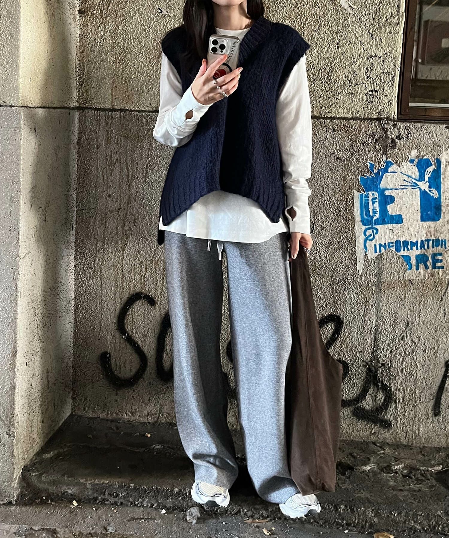 ボリュームのあるアウターに合わせても馴染む柔らかいフォルム。