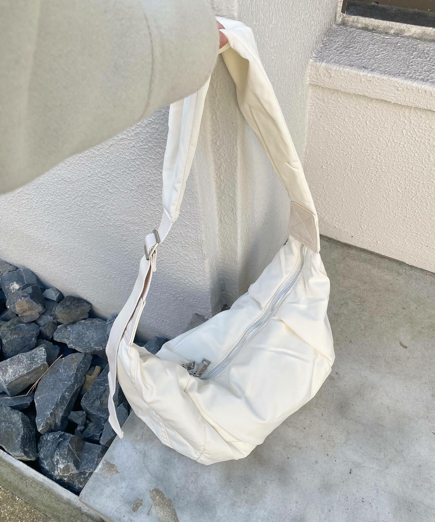 上下アイボリーでまとめた淡色系コーデは統一感が出ます。
