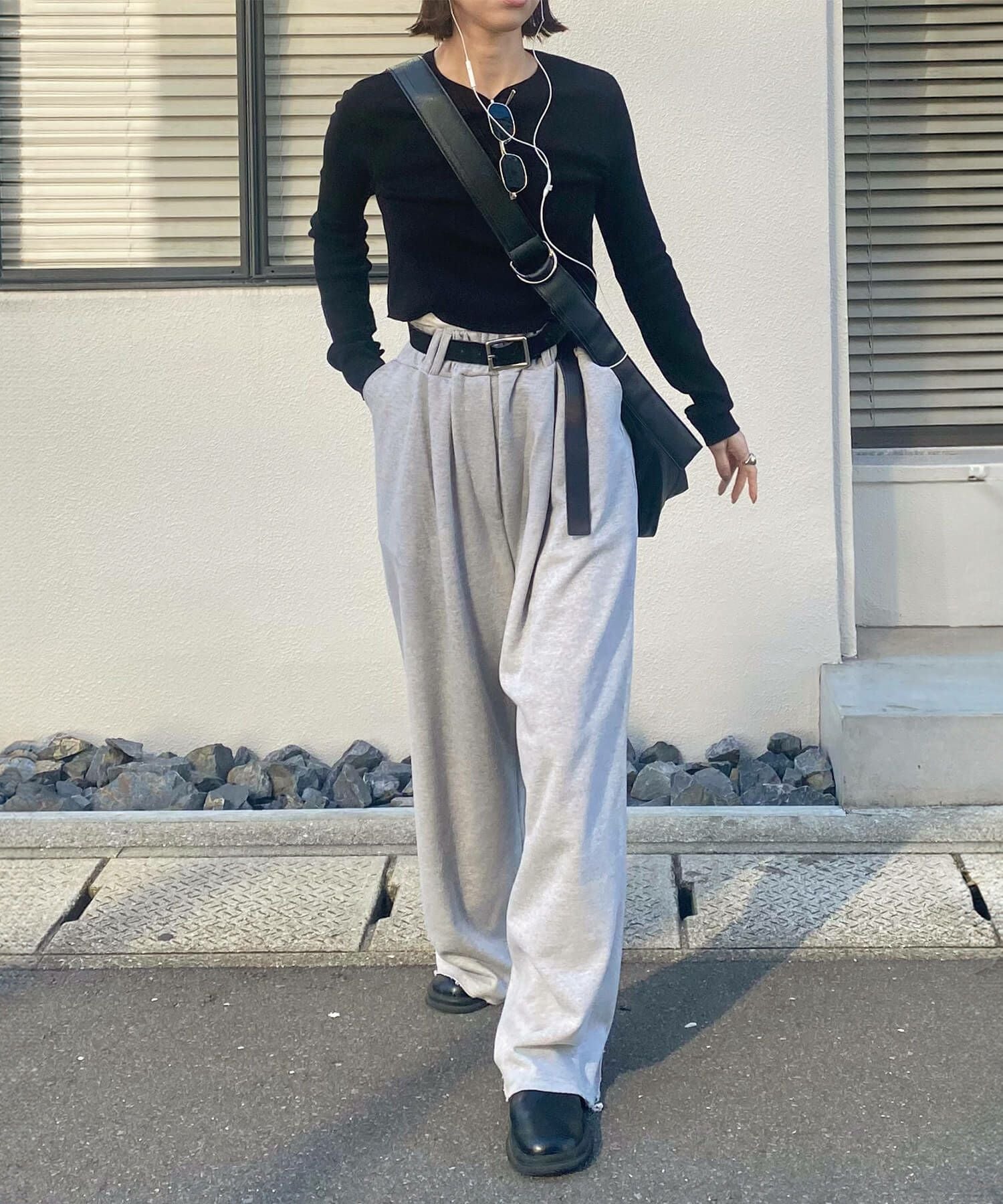 ハイウエストデニムやスラックスと合わせて、コンパクトなバランスを楽しむスタイリングがおすすめ。