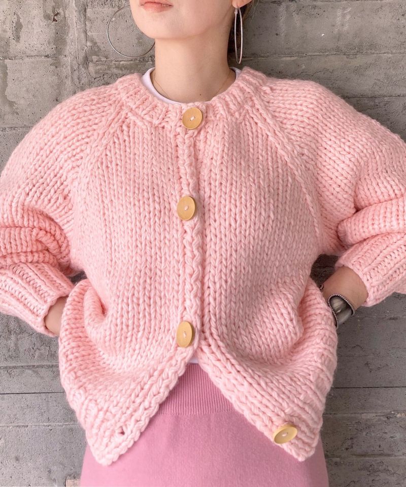 その為、1点1点編み目やサイズ感に多少の差がございます。ハンドニットならではの風合いをお楽しみ下さい。
