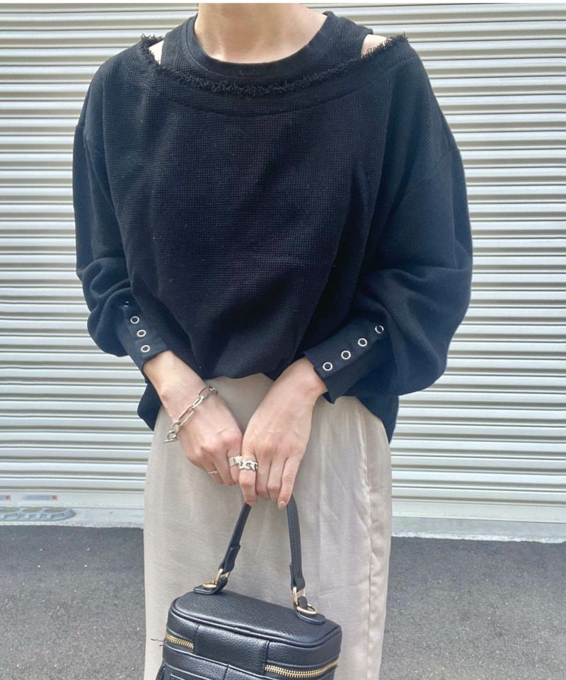 ワッフル生地に珍しい、レイヤード風のオープンデザインが最大のポイント。