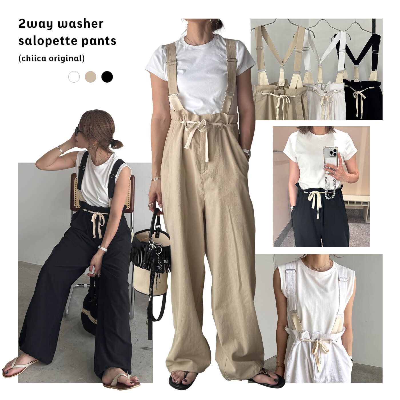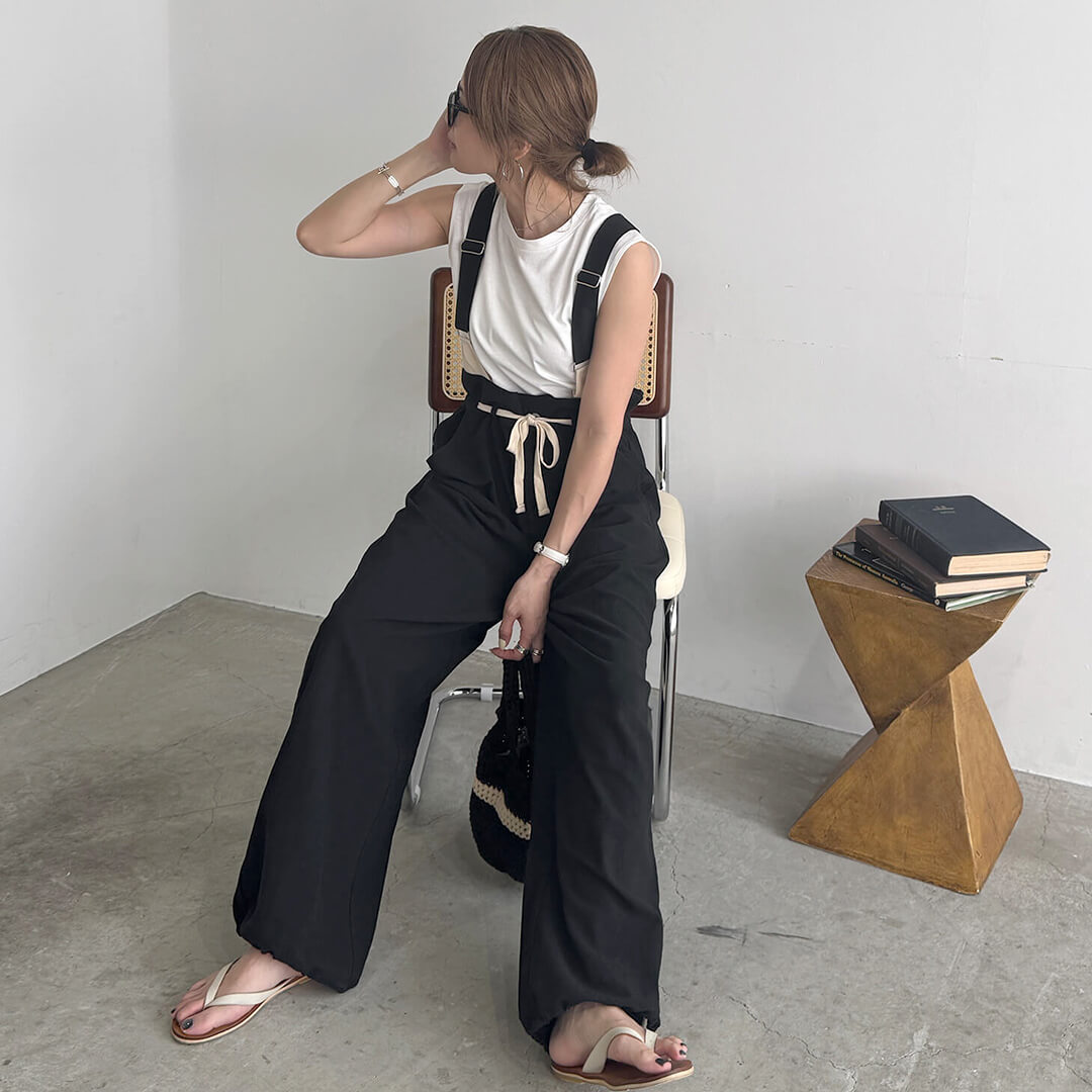 表面感のあるコットンレーヨン生地を使用したサロペットパンツが登場。