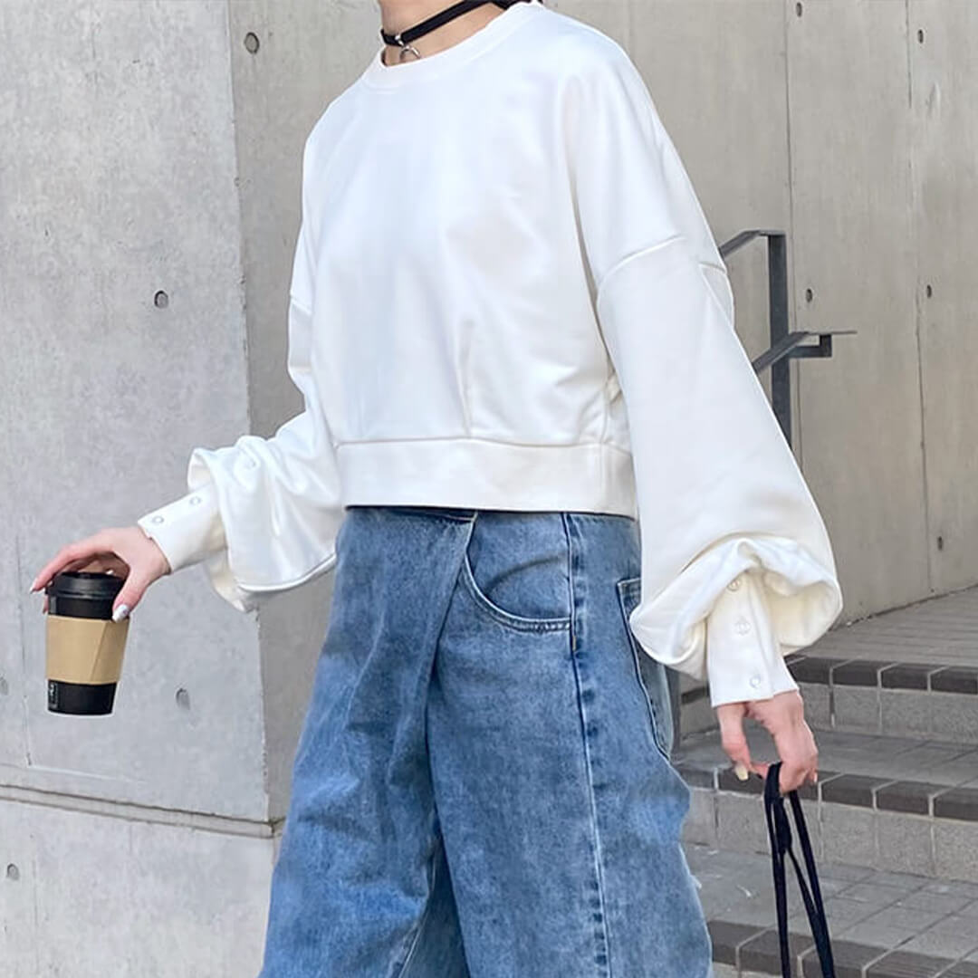 たっぷり生地を使用したボリュームスリーブが最大のポイント。