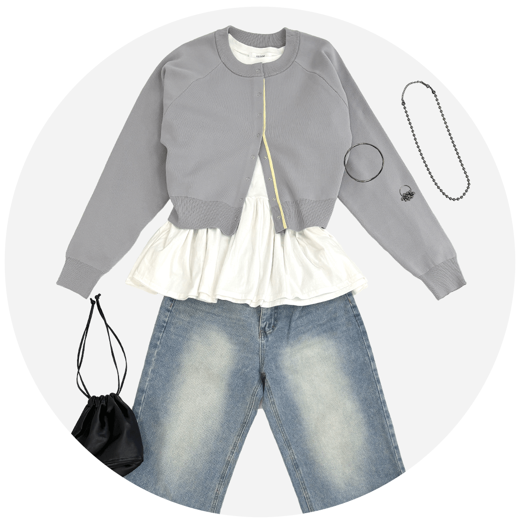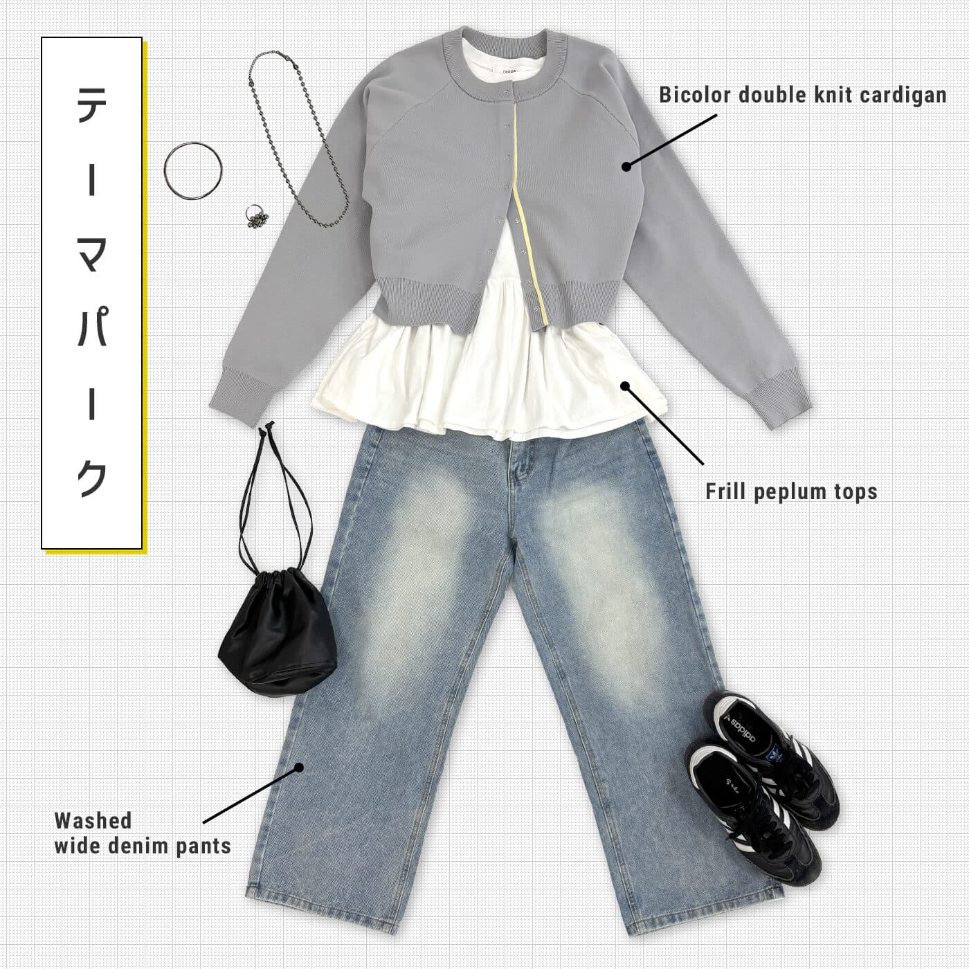 カーディガンを脱いでもしっかり可愛いペプラムロンTなので、はしゃいで暑くなっても大丈夫◎