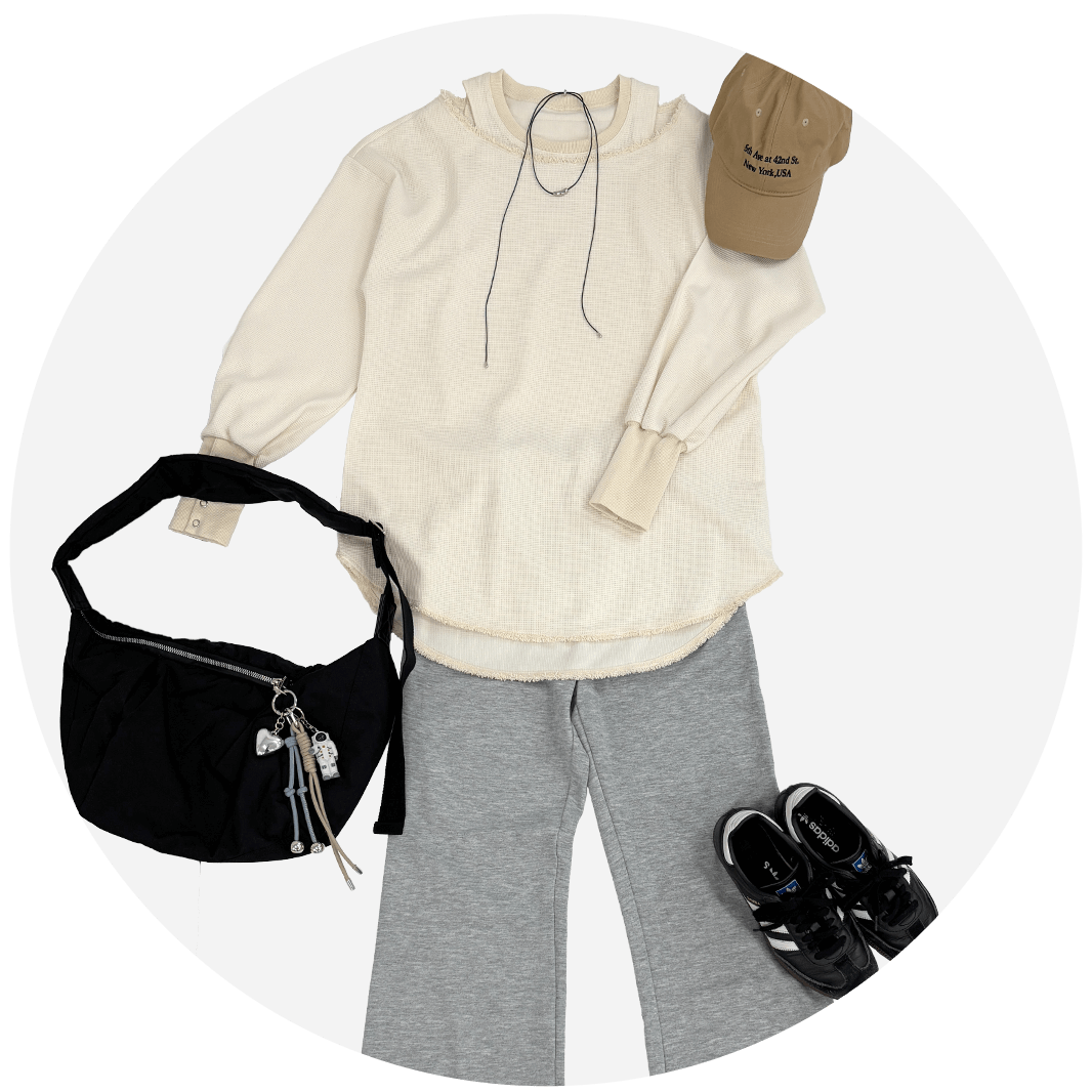 春のレジャーも心置きなく楽しめるよう、動きやすさも兼ね備えたスウェットパンツをチョイス!