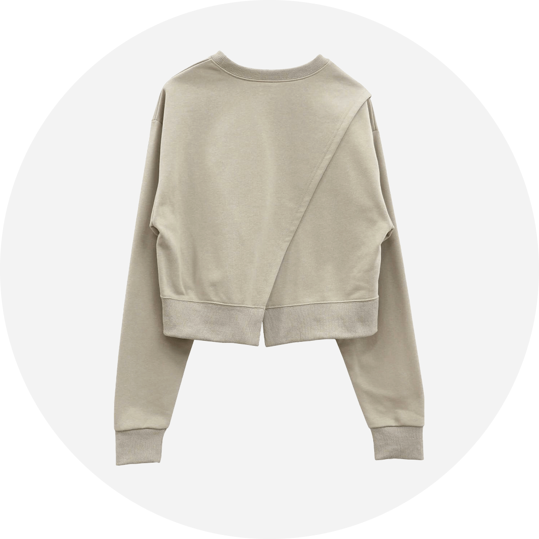 ちょっとしたこだわりのデザインを散りばめ、きれいめにも着られる唯一無二のデザインスウェット