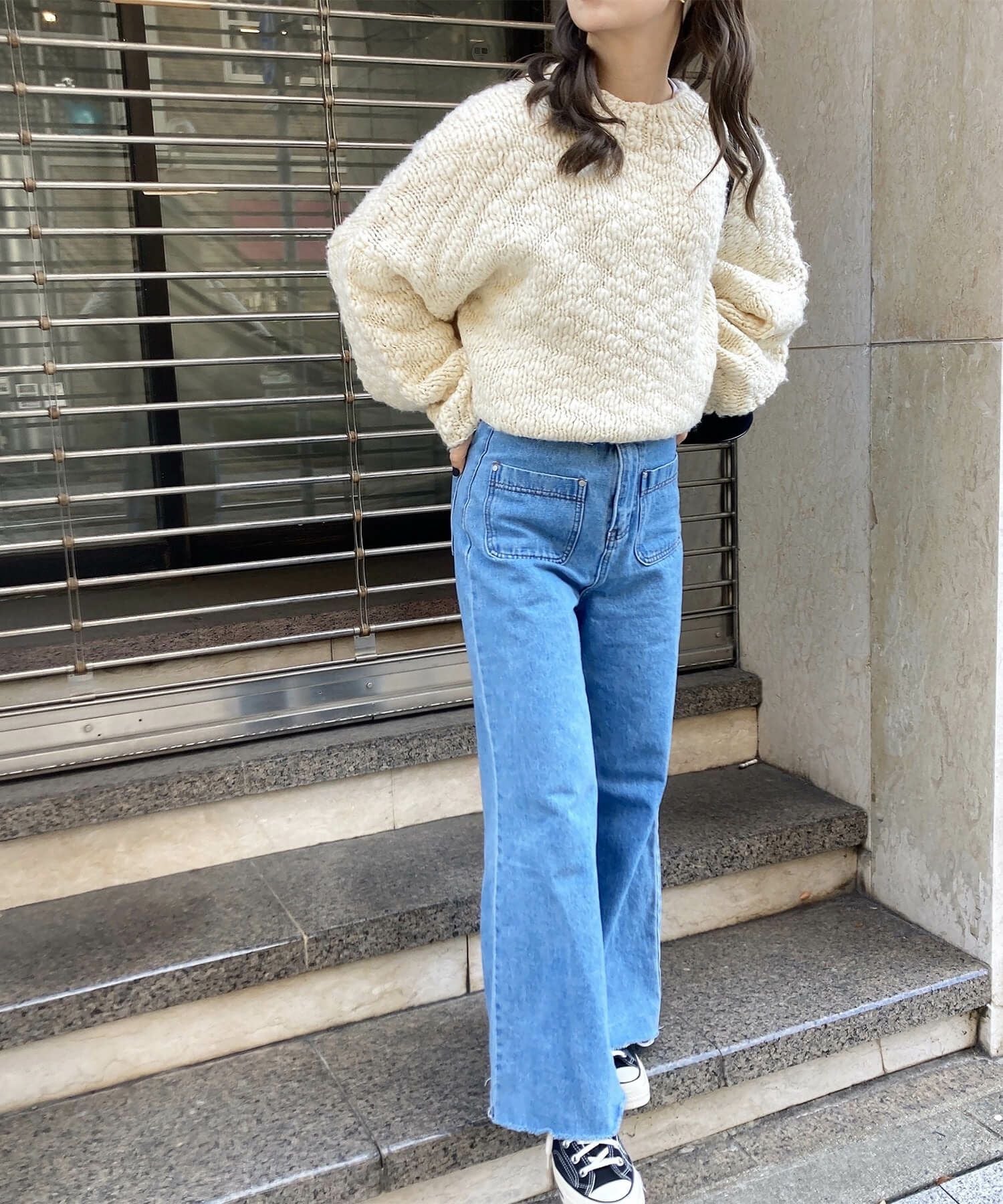 ニットパンツでこっそりリラックス感も...♪