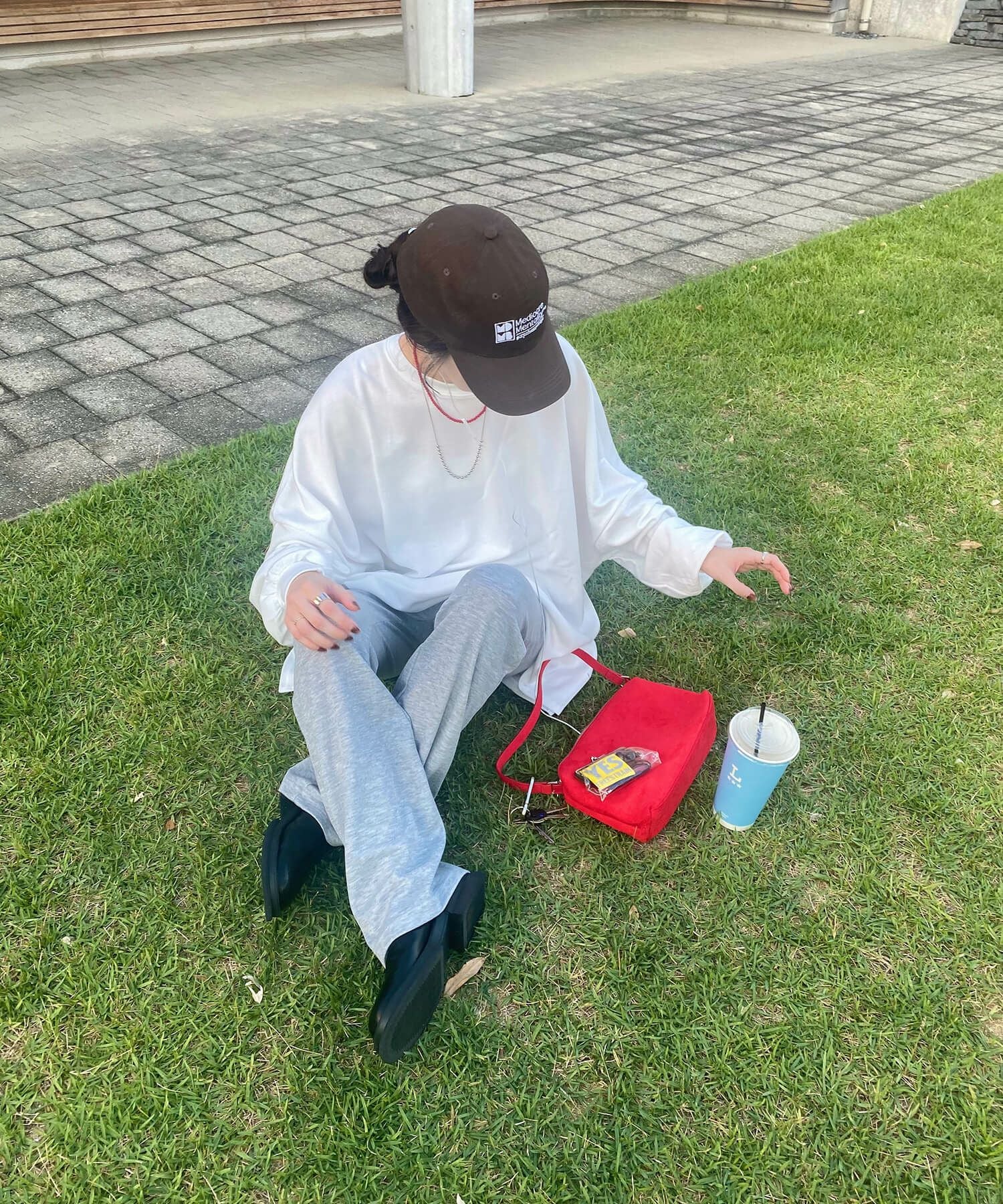 今っぽシルエットのコクーンパンと旬なスエードバッグを合わせておしゃれ見えも忘れない♡
