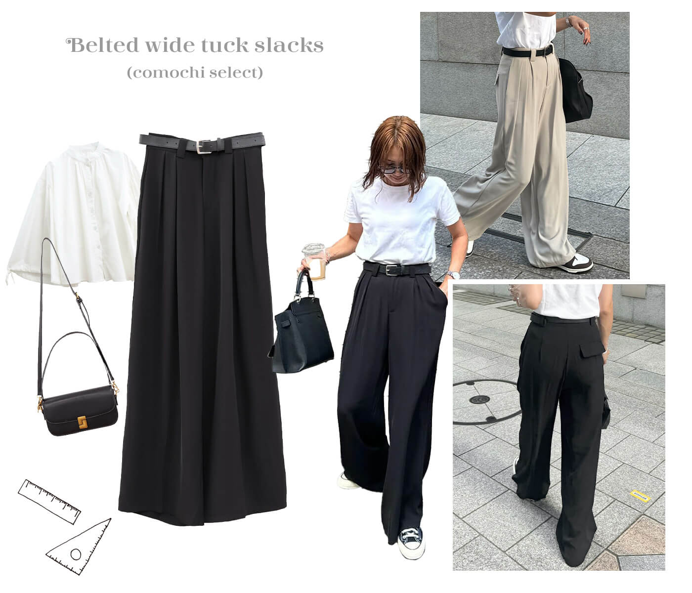 タックデザインとベルトマークがフォーマルな印象もプラス。